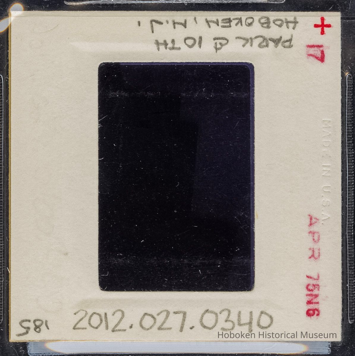 Color slide of detail view of cornices on an unidentified building on 10th and Park.
