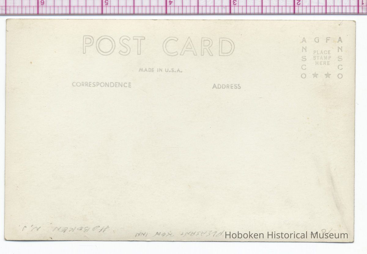 Postcard: Untitled. [Pleasant Hour Inn, Hoboken.] No date, circa 1930's.