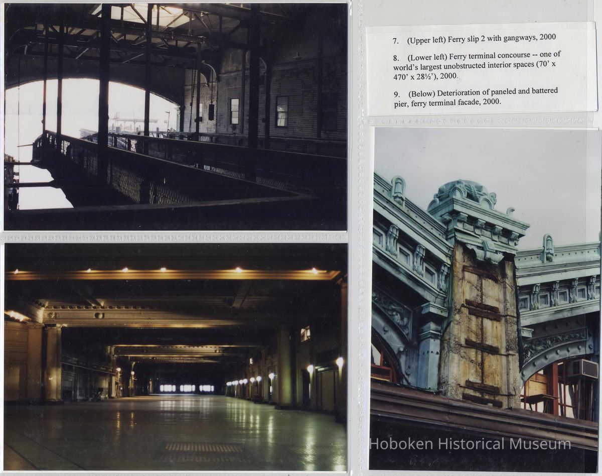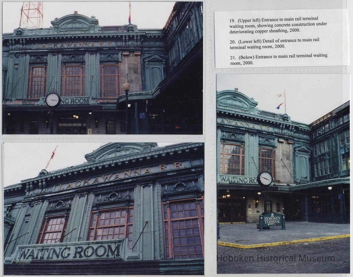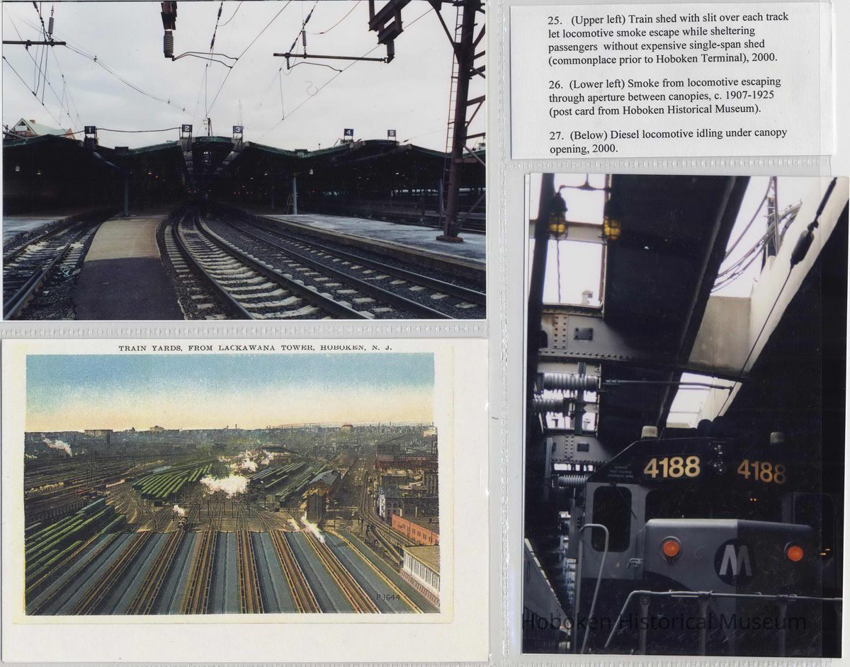 Digital color images of 36 color photos or postcard images of the Hoboken Terminal, Hoboken, circa 1907-2000. Photographs taken 2000; photographer not identified. Item as assembled circa 2001 in six plastic storage sleeves with numbers and typed captions. Tiffs media archive