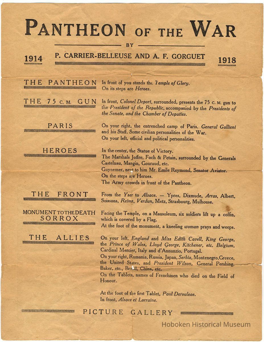 Pamphlet: The U.S.S. Siboney's Paris Leave. July 19-29, 1919. With: promotional flyer for Pantheon of the War, Paris, no date, (1919).