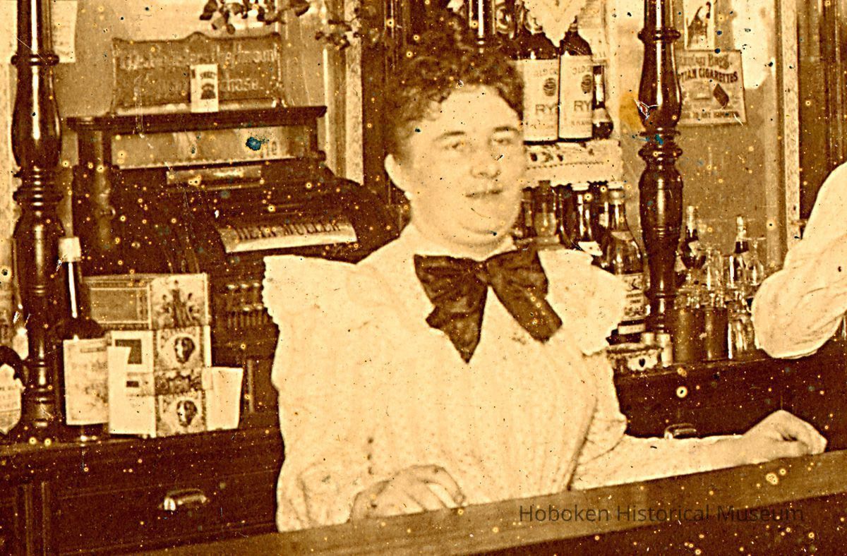 A detail of a name-plate on the cash register shows the name "Herr Muller" who was not related to the Muller family of Hoboken.