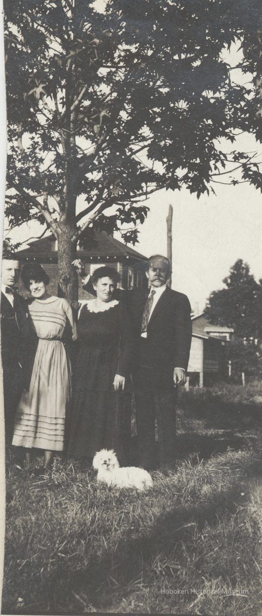 In February 2005, Hetty Muller identified John Muller at the left with Leonore Muller next to him and the dog as "Tootsie." The other man and woman are not identified.