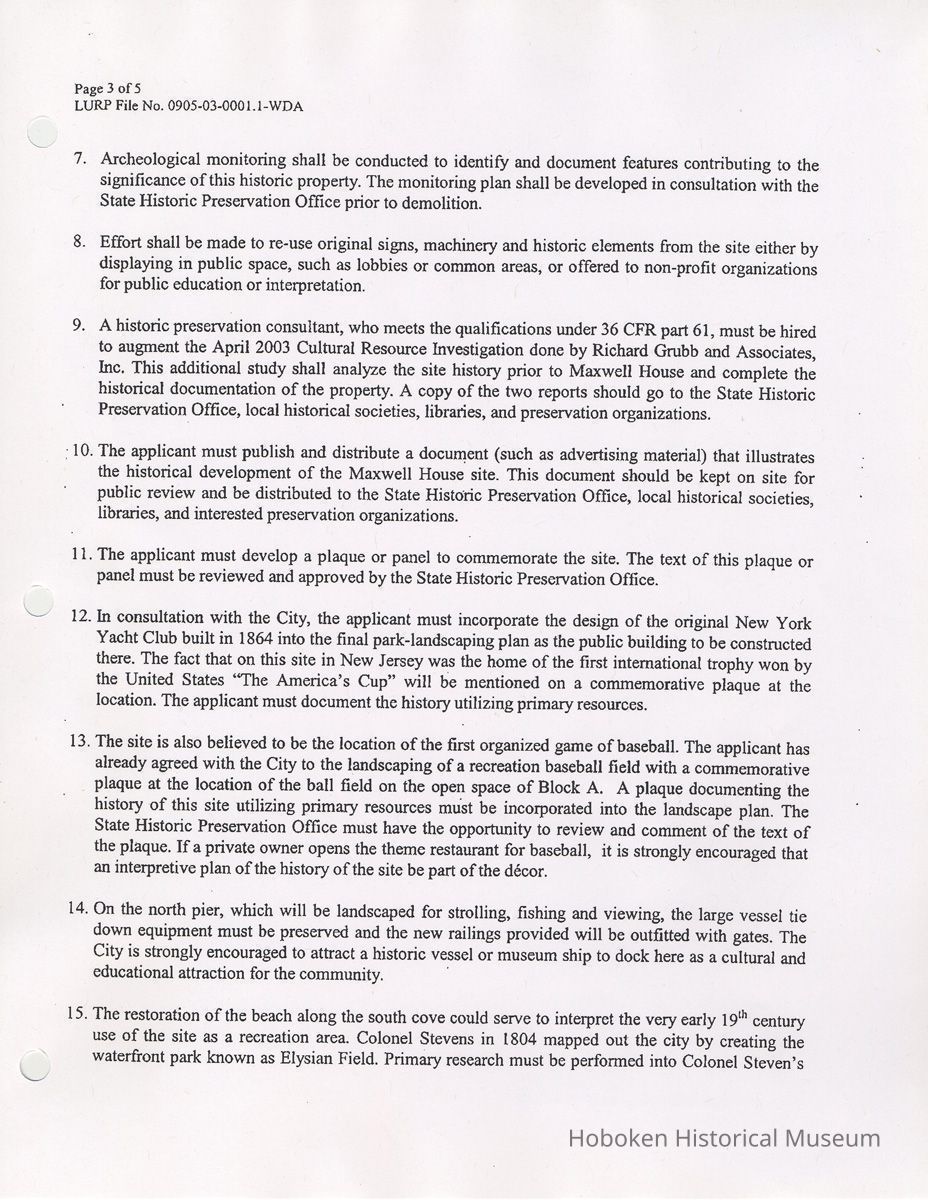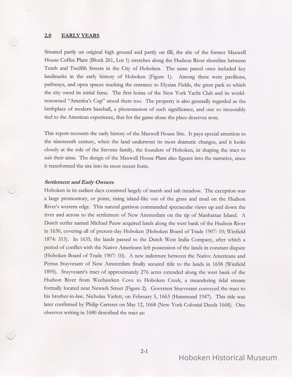Historic Background and Development of the Maxwell House Site. City of Hoboken, Hudson County, New Jersey. By Philip A. Hayden, March 30, 2005.