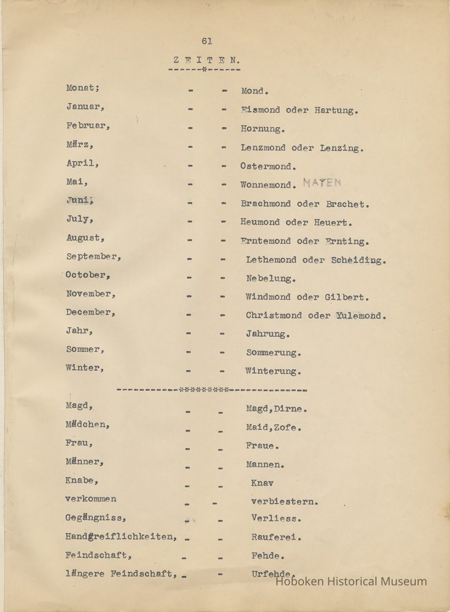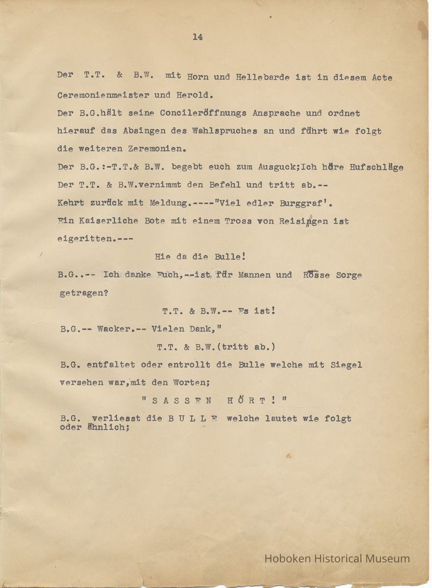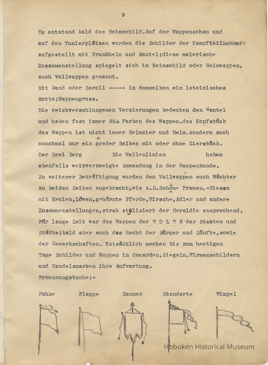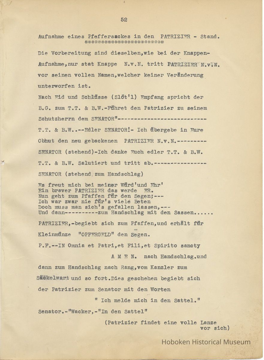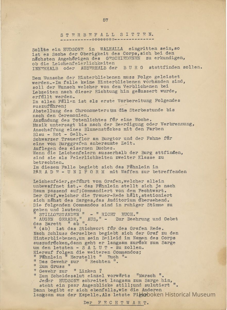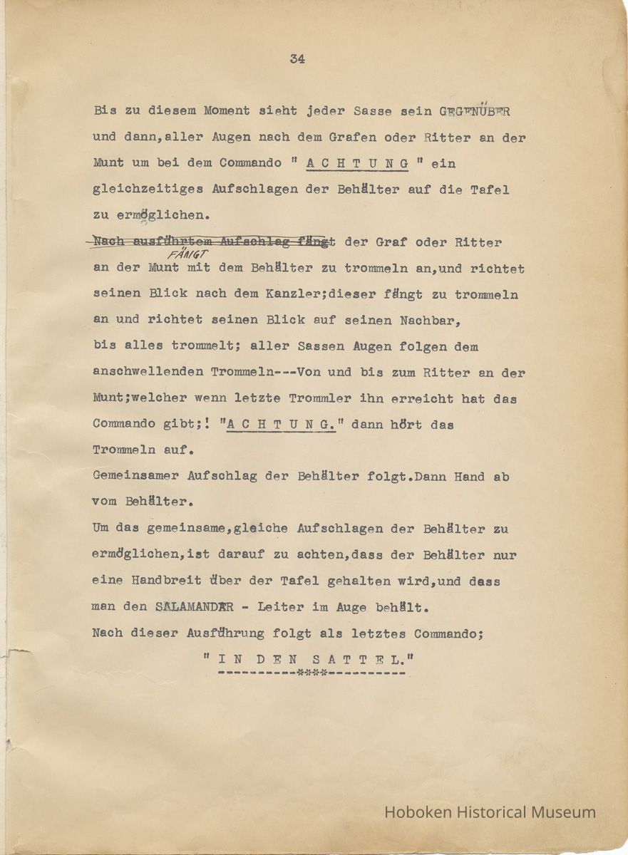 History of the Hudsonia Club 1908-1958; 506 Court St., Hoboken, 1958. 67 typewritten leaves, two-hole punched and reinforced; with a two ring canvas covered binder with hand titled and decorated front board. In German, untranslated, with holographic corrections, annotations and deletions. PDF on file.