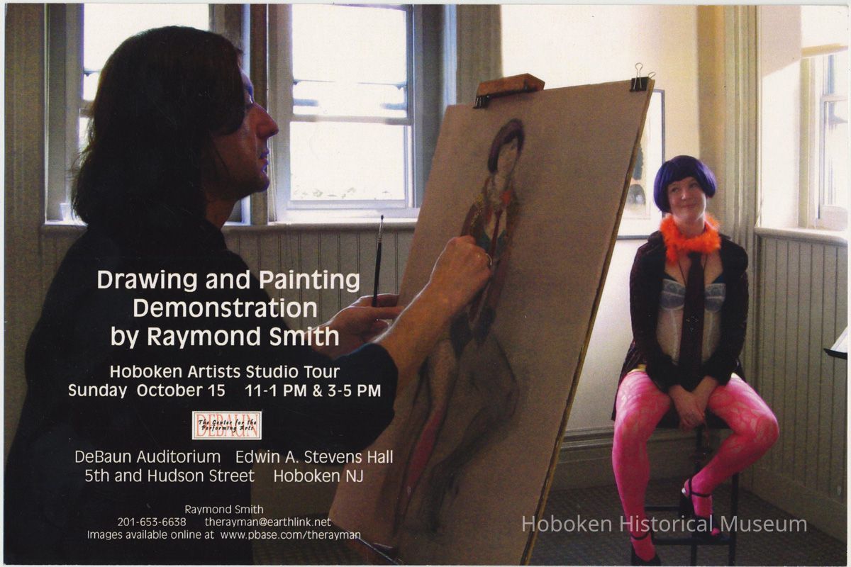 Announcement card: Raymond Smith, Recent Work. Hoboken Artists Studio Tour, Oct. 15, 2006. DeBaun Auditorium, Edwin A. Stevens Hall [Stevens Institute of Technology], 5th & Hudson St(sic), Hoboken, NJ. 5-5/8" wide by 8-1/2" high.