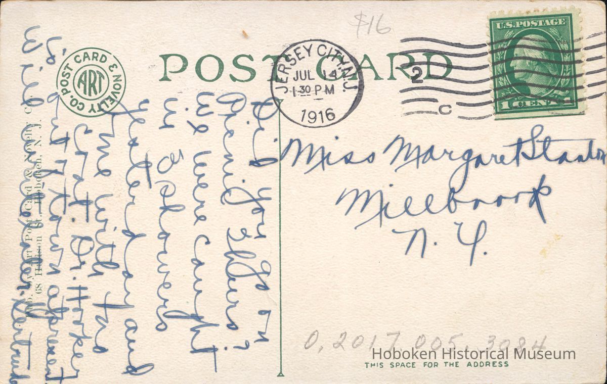 Postcard: Type Foudry BuildingJersey City, NJ Postmarked Jul 14, 1916 Color 3 1/2 x 5 1/2"