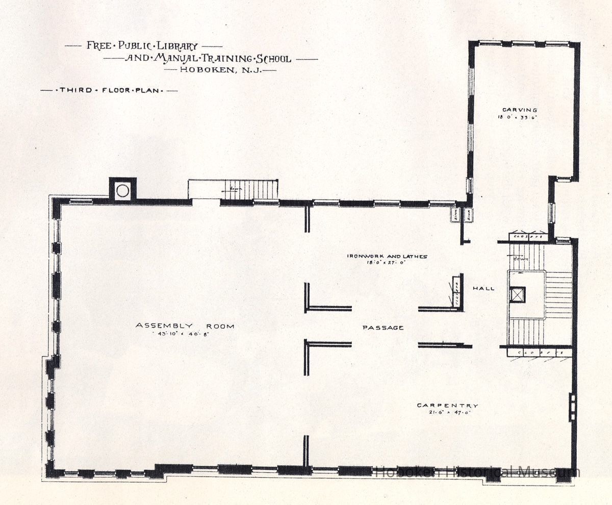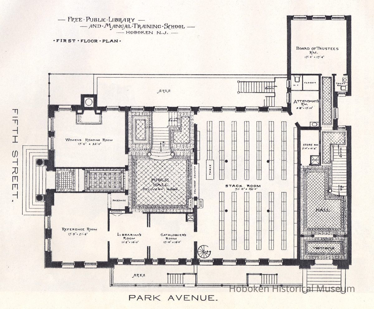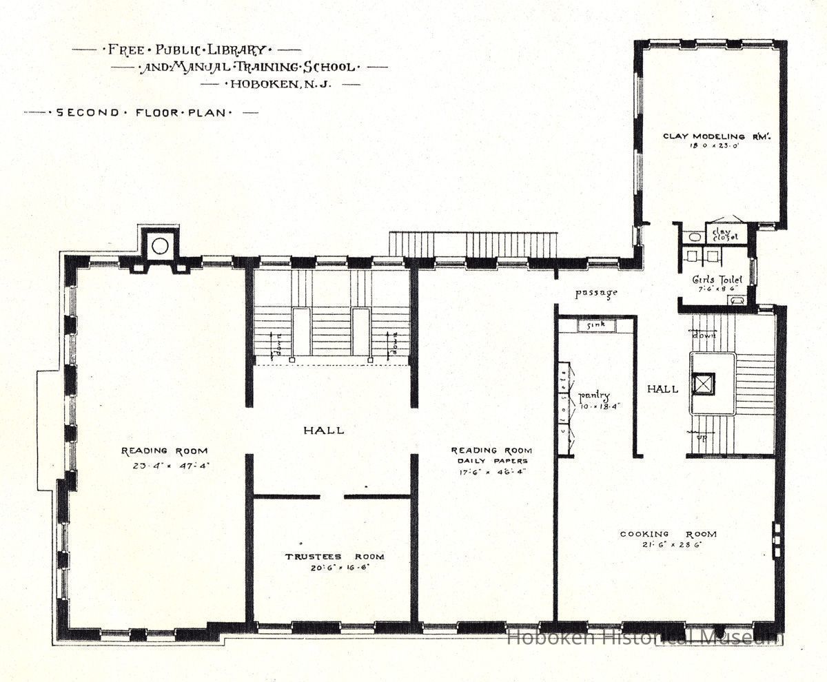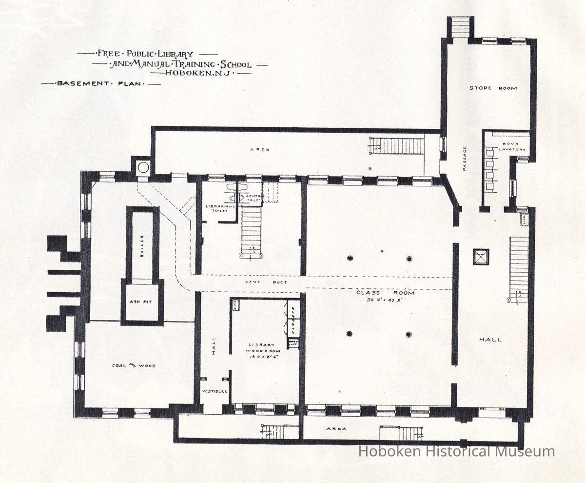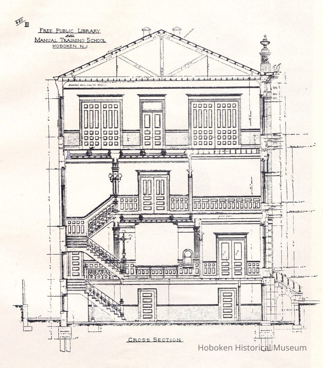 Architectural plans of Free Public Library and Manual Training School, Hoboken, N.J., no date, circa 1895-1897.