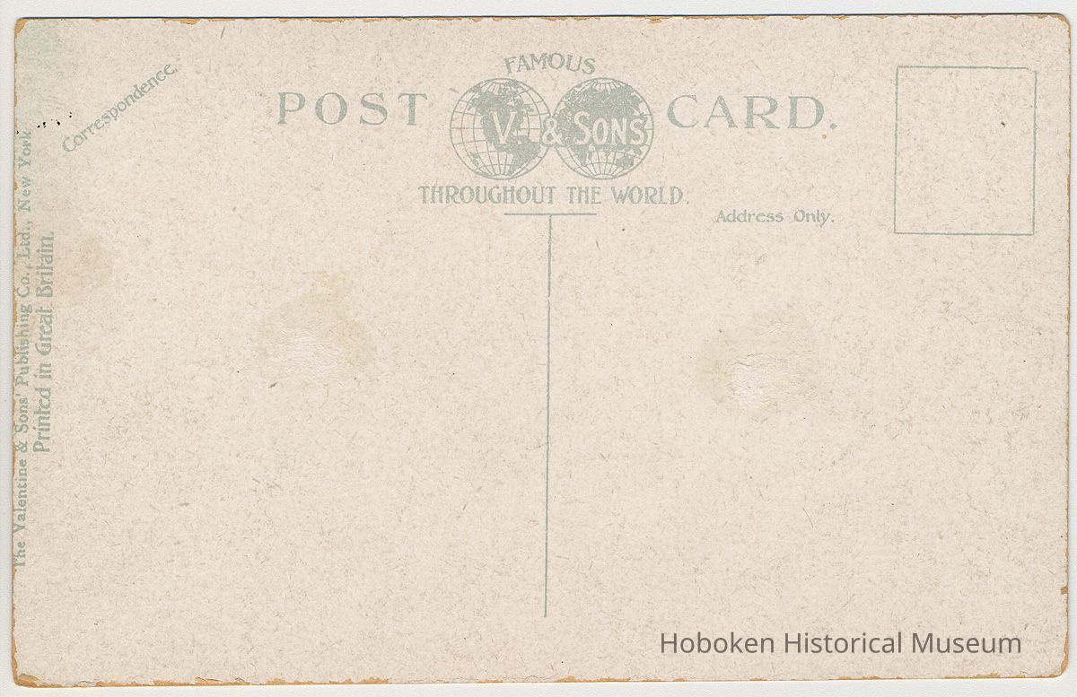 Date(s) Created: 1905-1908 Date(s): 1905-1908 Copies: Digital files for prints and physical files of duplicated prints: Museum Print Program (MPP) Series 1001-1999. Prints in this series were originally in Jim Hans books labeled "1-A" and "1-B" Location of Originals: Original is in Museum Print Program under accession 2007.040; Historic Hoboken images purchased in bulk in 2007 from Jim Hans.