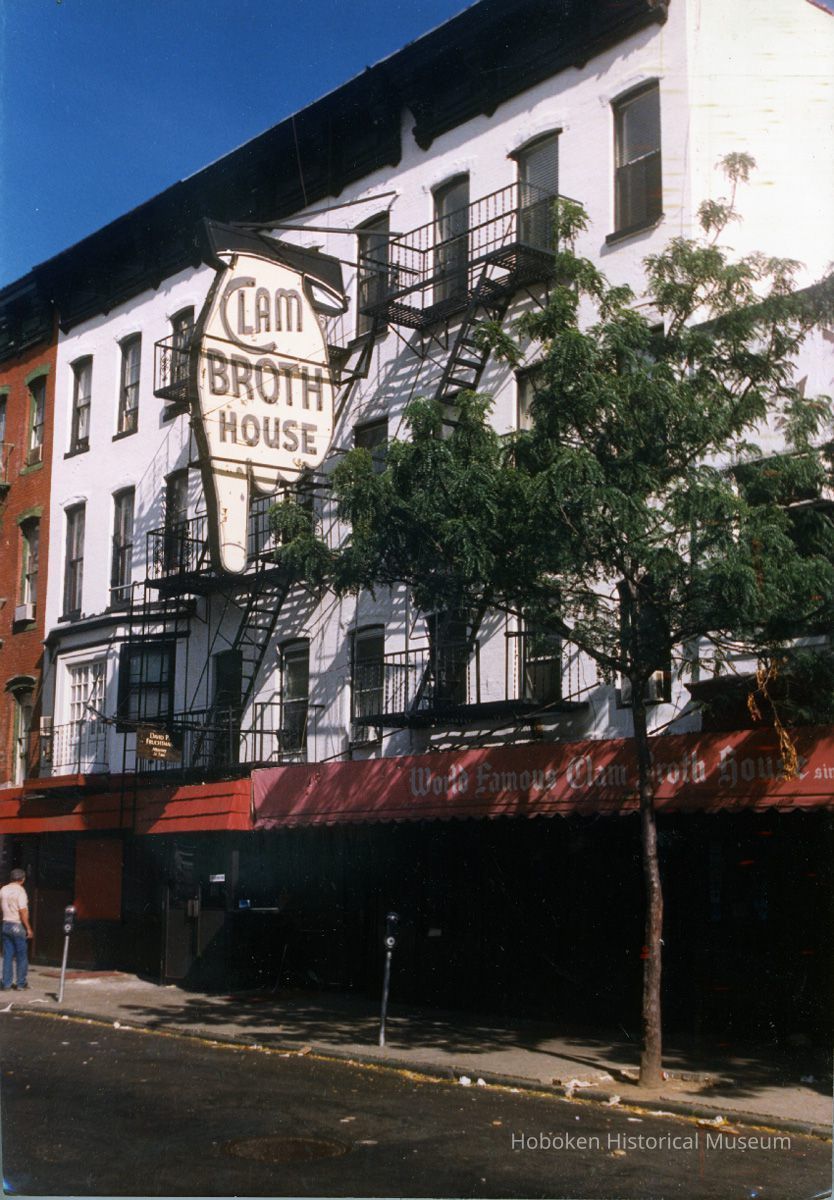 Color print of exterior of Clam Broth House, Newark St., Hoboken, 1986.