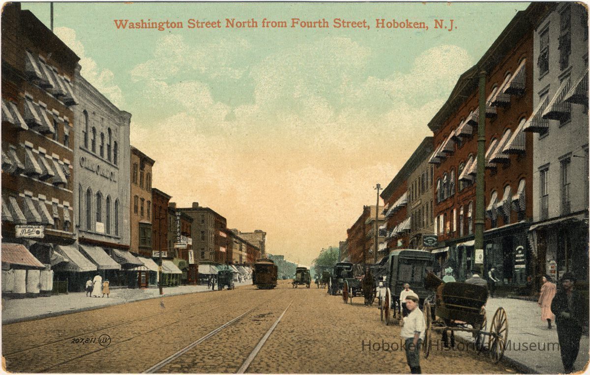 Color postcard: Washington Street North From Fourth Street, Hoboken, circa 1908.