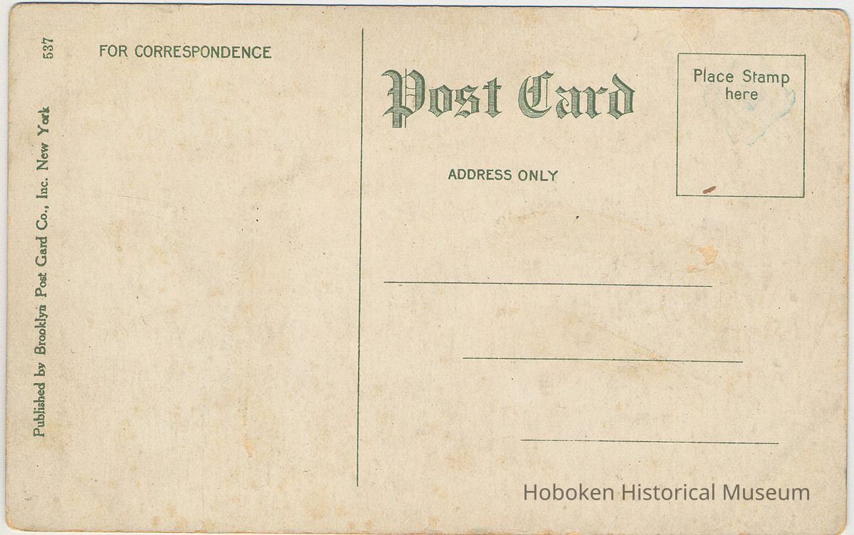 Date(s) Created: 1905-1908 Date(s): 1905-1908 Copies: Digital files for prints and physical files of duplicated prints: Museum Print Program (MPP) Series 1001-1999. Prints in this series were originally in Jim Hans books labeled "1-A" and "1-B" Location of Originals: Original is in Museum Print Program under accession 2007.040; Historic Hoboken images purchased in bulk in 2007 from Jim Hans.