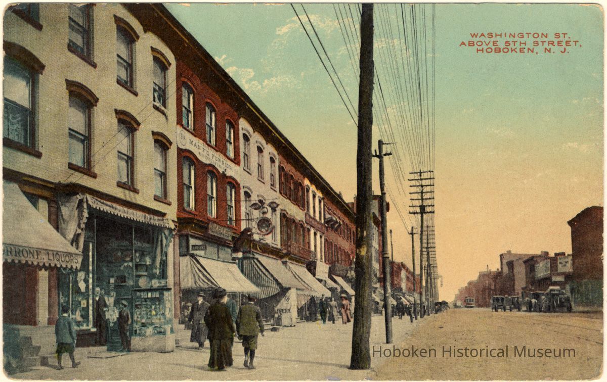 Color postcard: Washington Street North from Fifth Street, Hoboken, circa 1908.