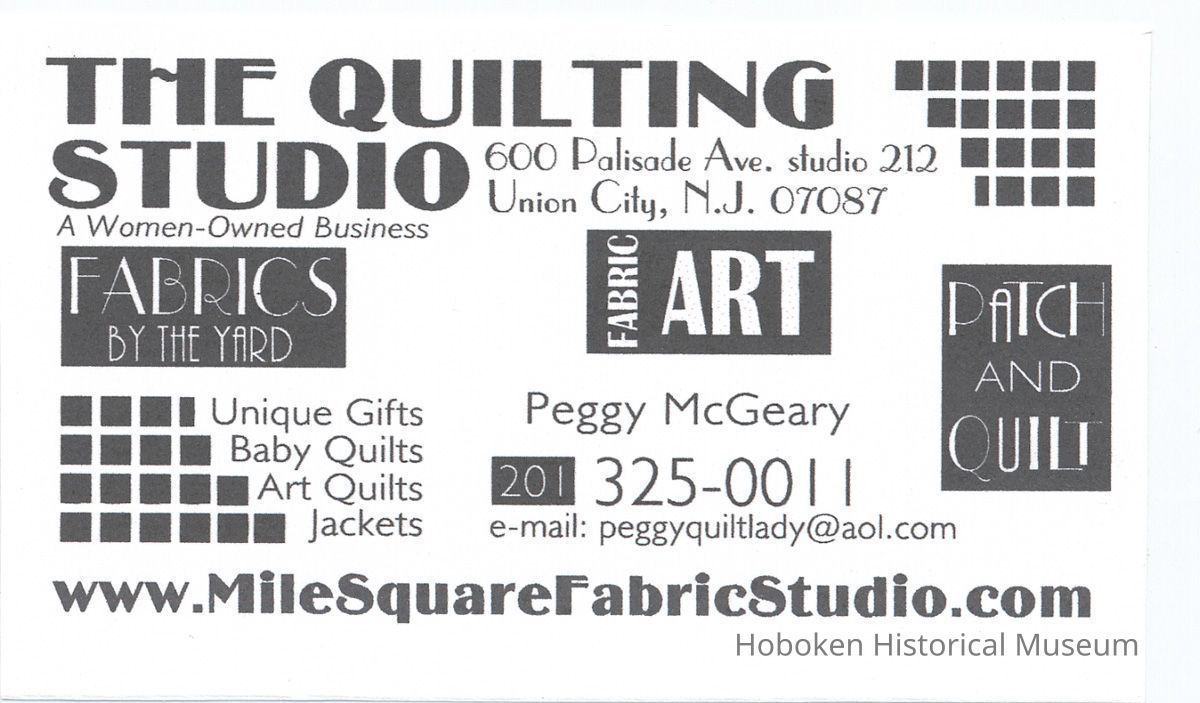 Business cards of Peggy McGeary, quilt artist.