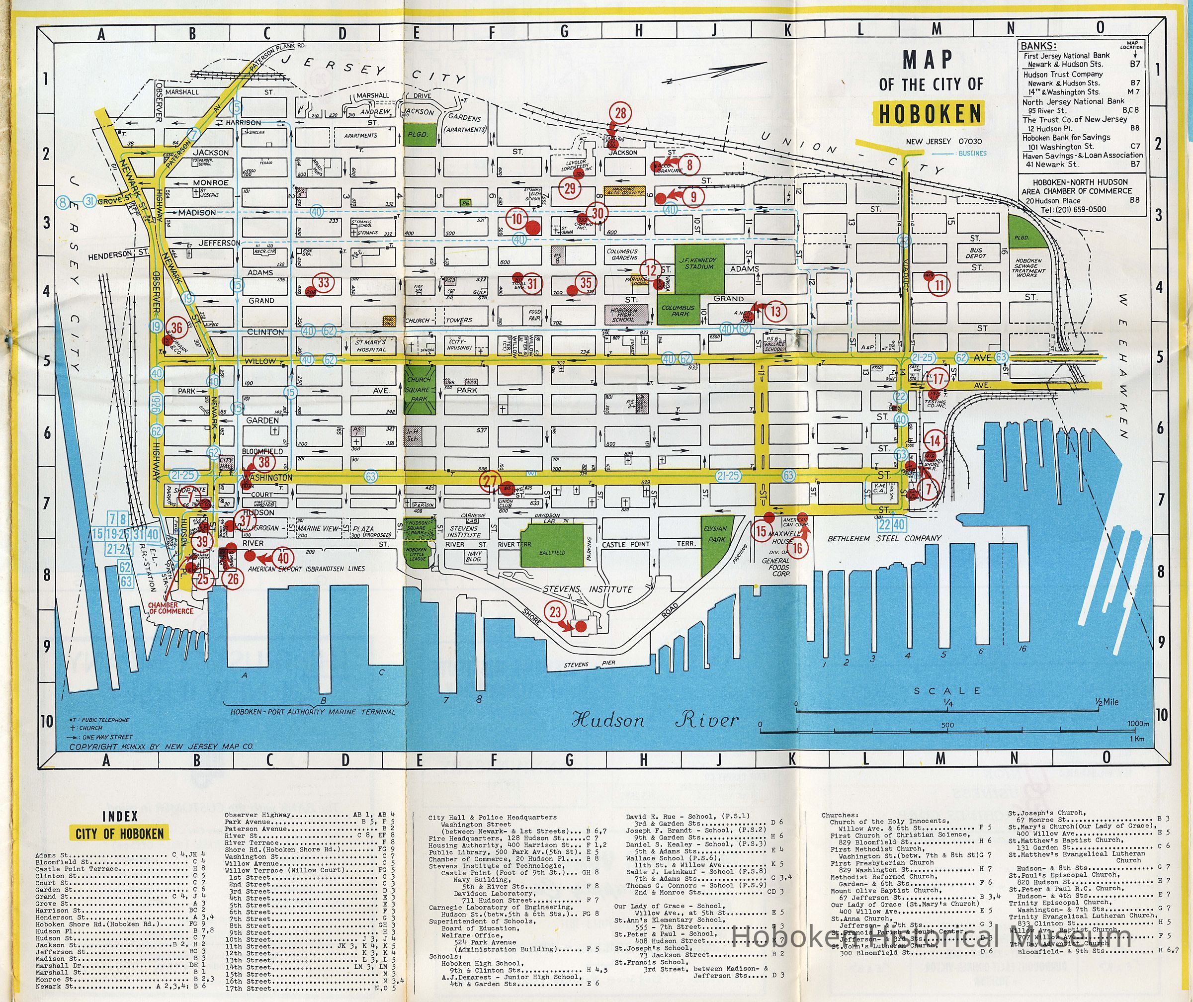 Street Map of the Hoboken - North Hudson County Area with index. 1970.