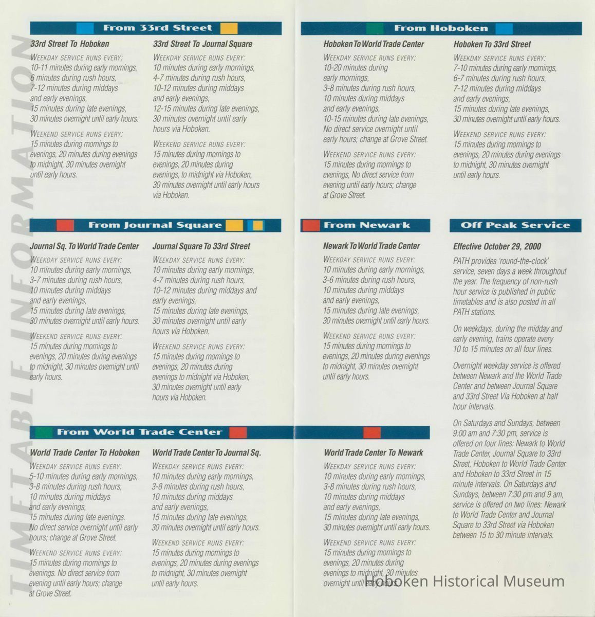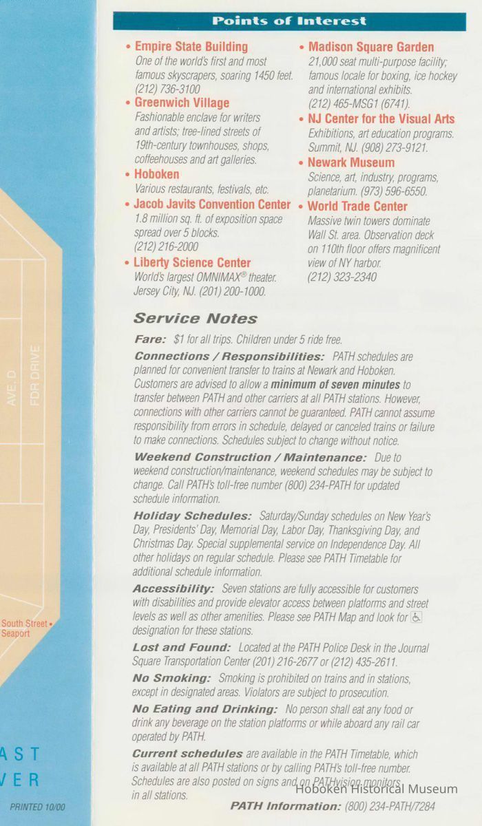 PATH Map and Guide, Effective October 29, 2000. Folded: 4" wide x 8" high.