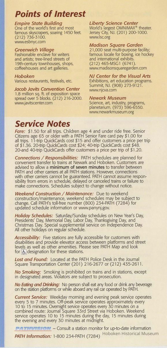 PATH Map and Guide, Effective June 29, 2003. Folded: 4" wide x 8" high. 2 copies.
