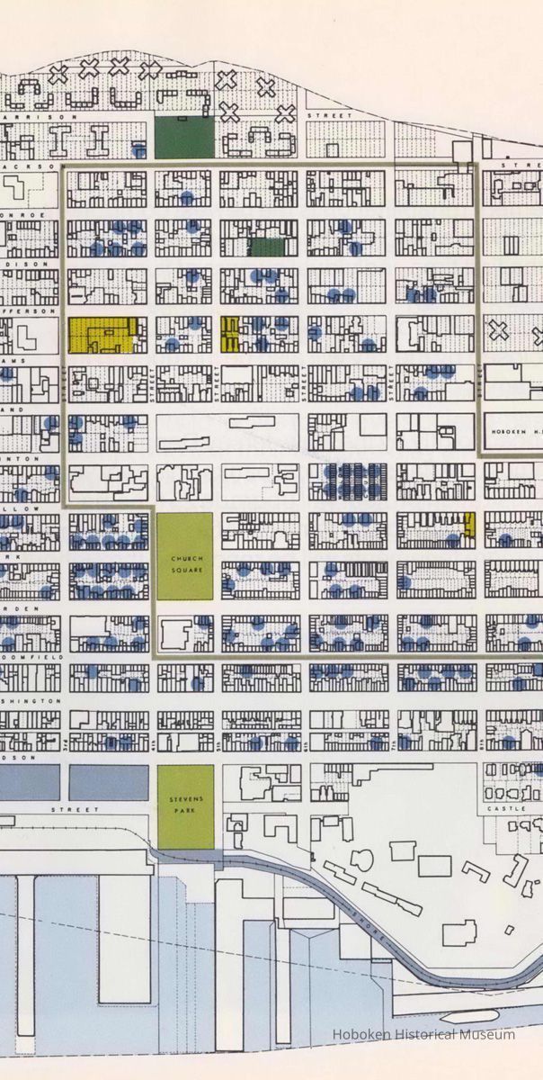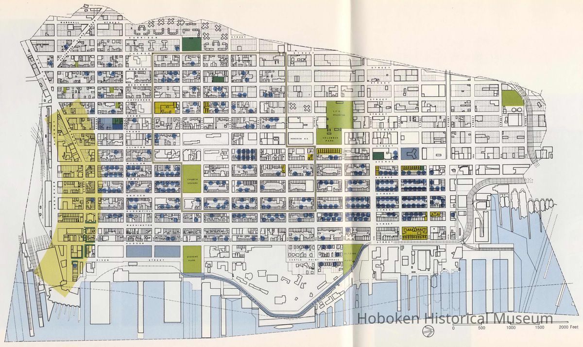 Map of Hoboken, reference images, from pgs. 18-19 of Hoboken ...Reaching Out to Tomorrow. Community Development Agency, Hoboken, May 1975.