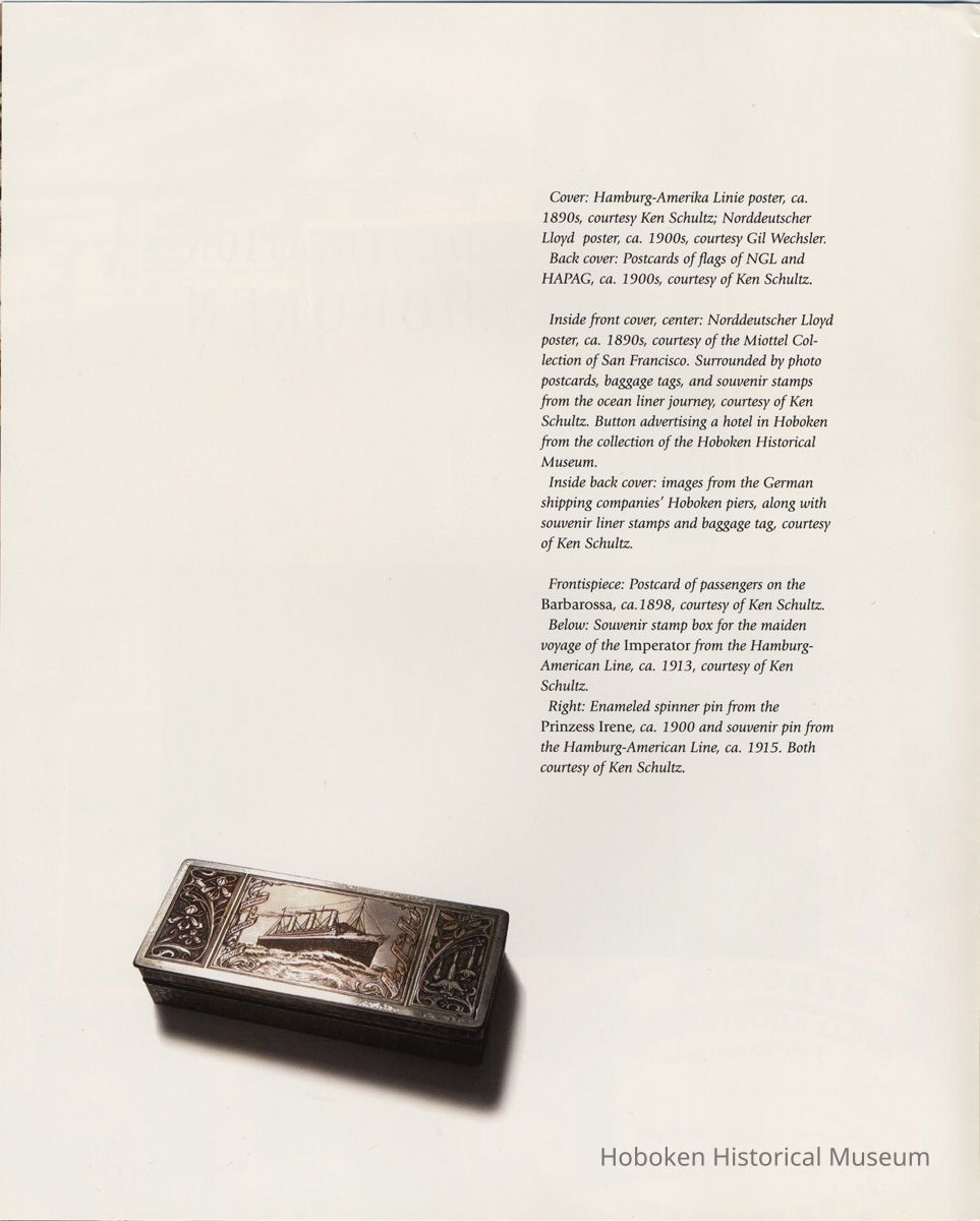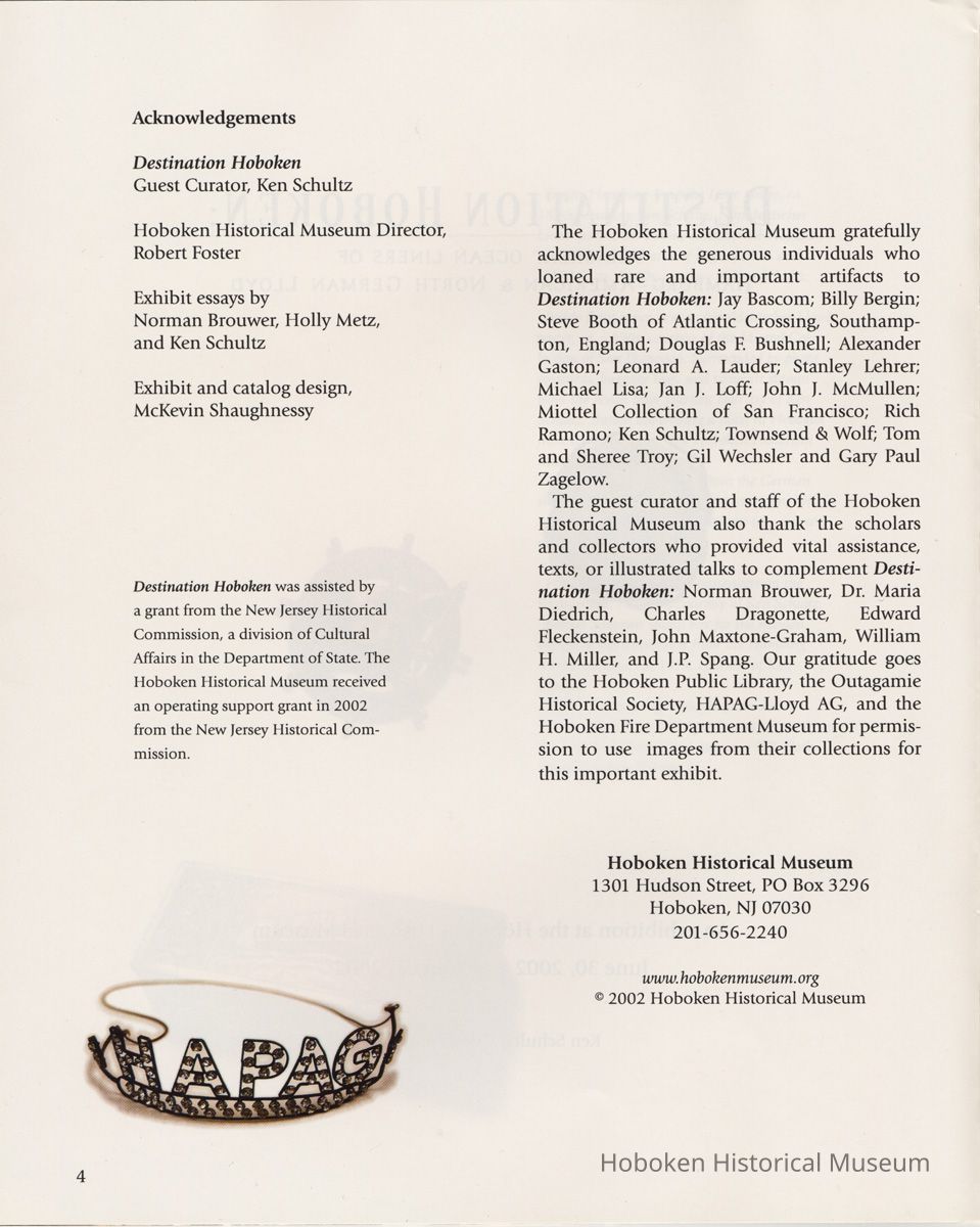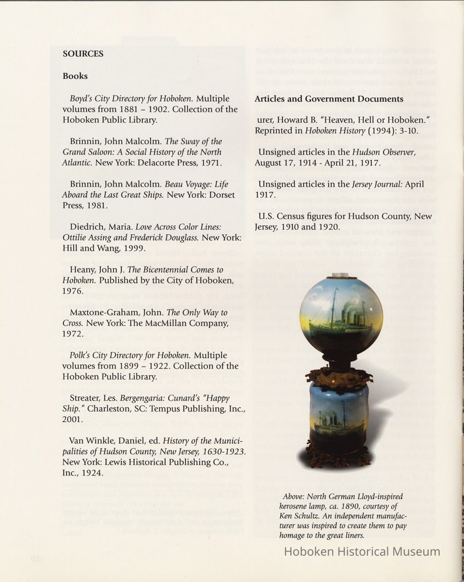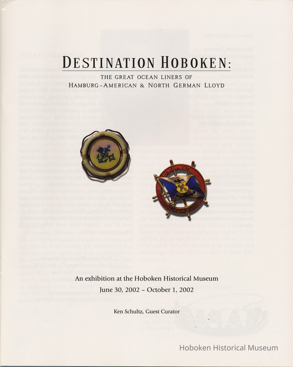Destination Hoboken: The Great Ocean Liners of Hamburg-American and North German Lloyd. An exhibition at the Hoboken Historical Museum, June 30, 2002 - October 1, 2002. Ken Schultz, Guest Curator.
