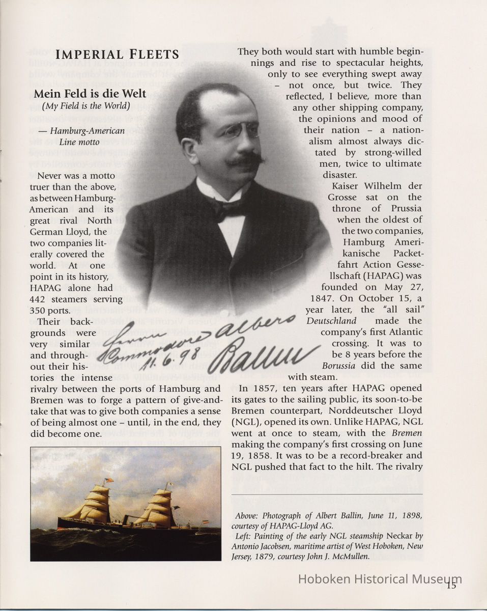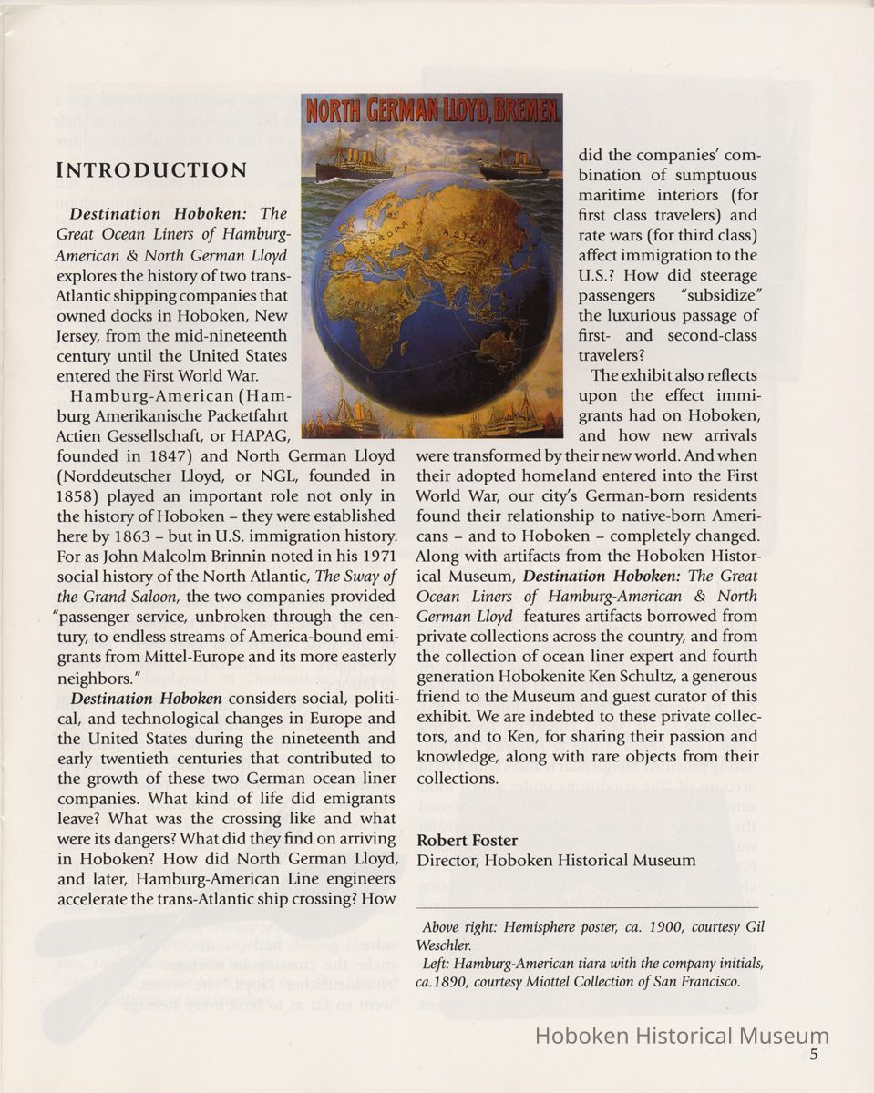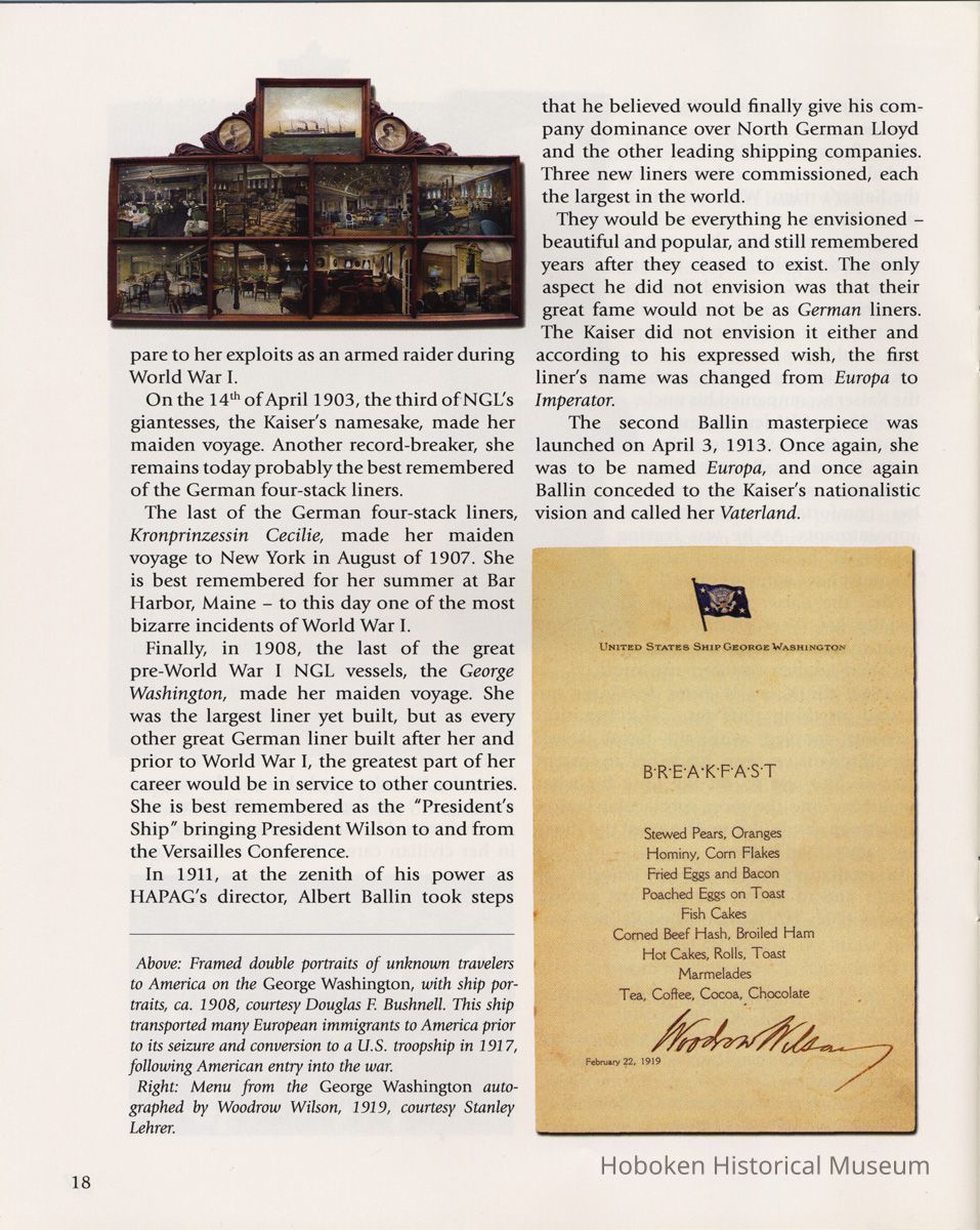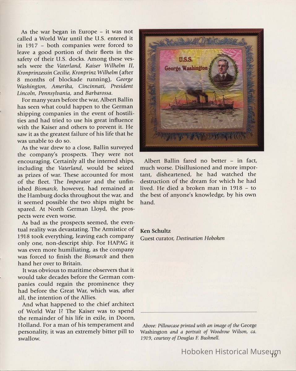 Destination Hoboken: The Great Ocean Liners of Hamburg-American and North German Lloyd. An exhibition at the Hoboken Historical Museum, June 30, 2002 - October 1, 2002. Ken Schultz, Guest Curator.