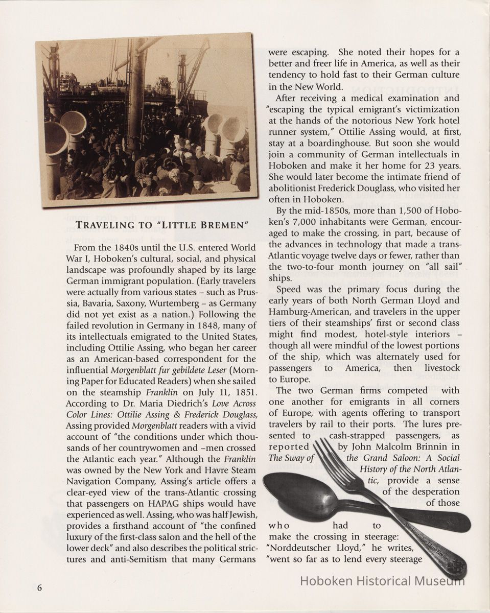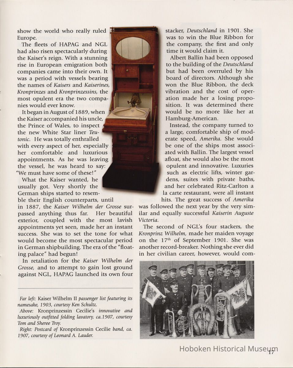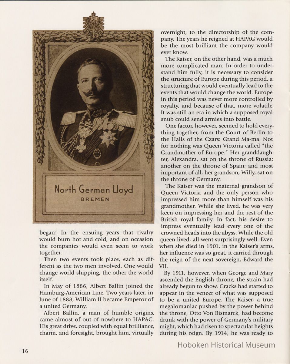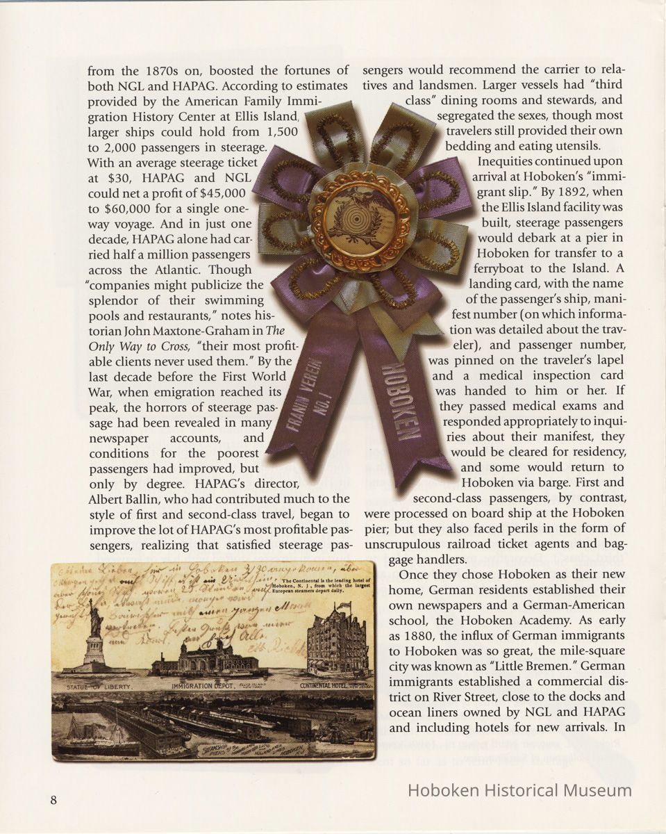 Destination Hoboken: The Great Ocean Liners of Hamburg-American and North German Lloyd. An exhibition at the Hoboken Historical Museum, June 30, 2002 - October 1, 2002. Ken Schultz, Guest Curator.
