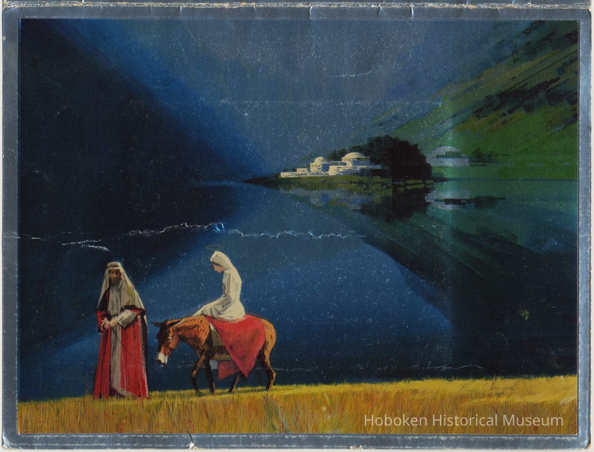 Color photo, 3-1/2" x 4-1/4" wide mounted inside at top. Imprinted below holiday greeting: Louis and Mary DePascale, Edward, Paul, Joseph and Thomas.