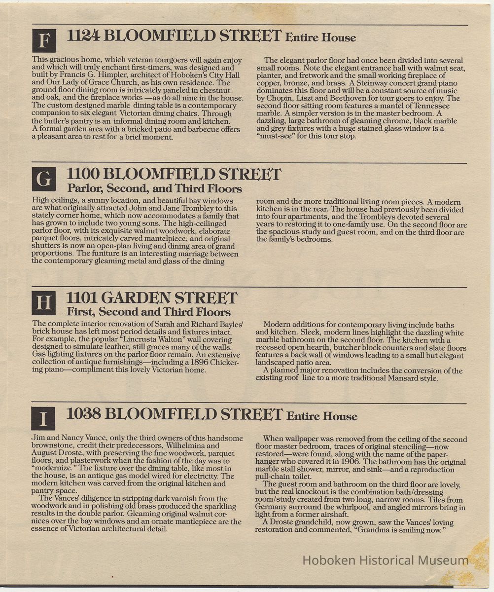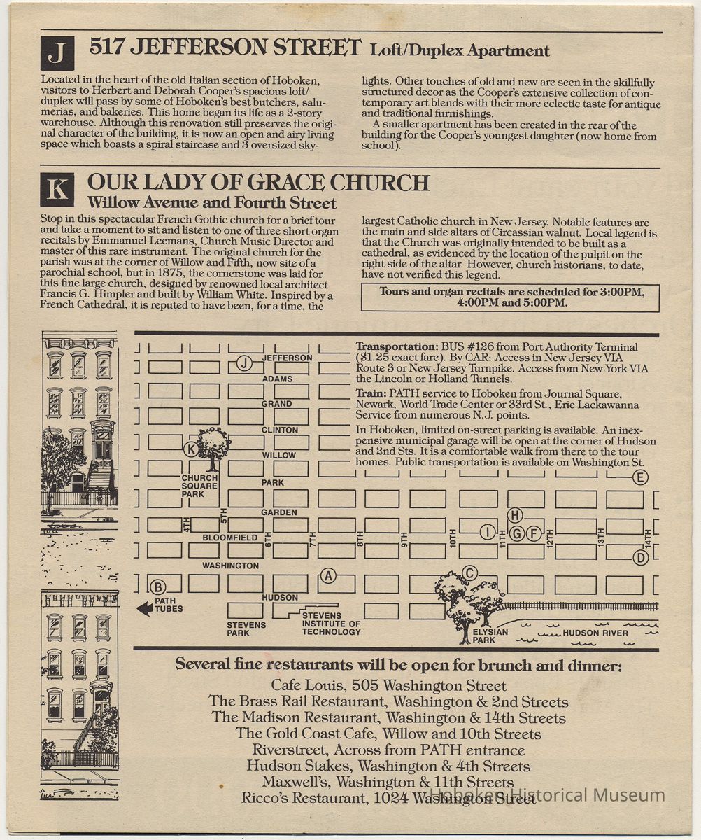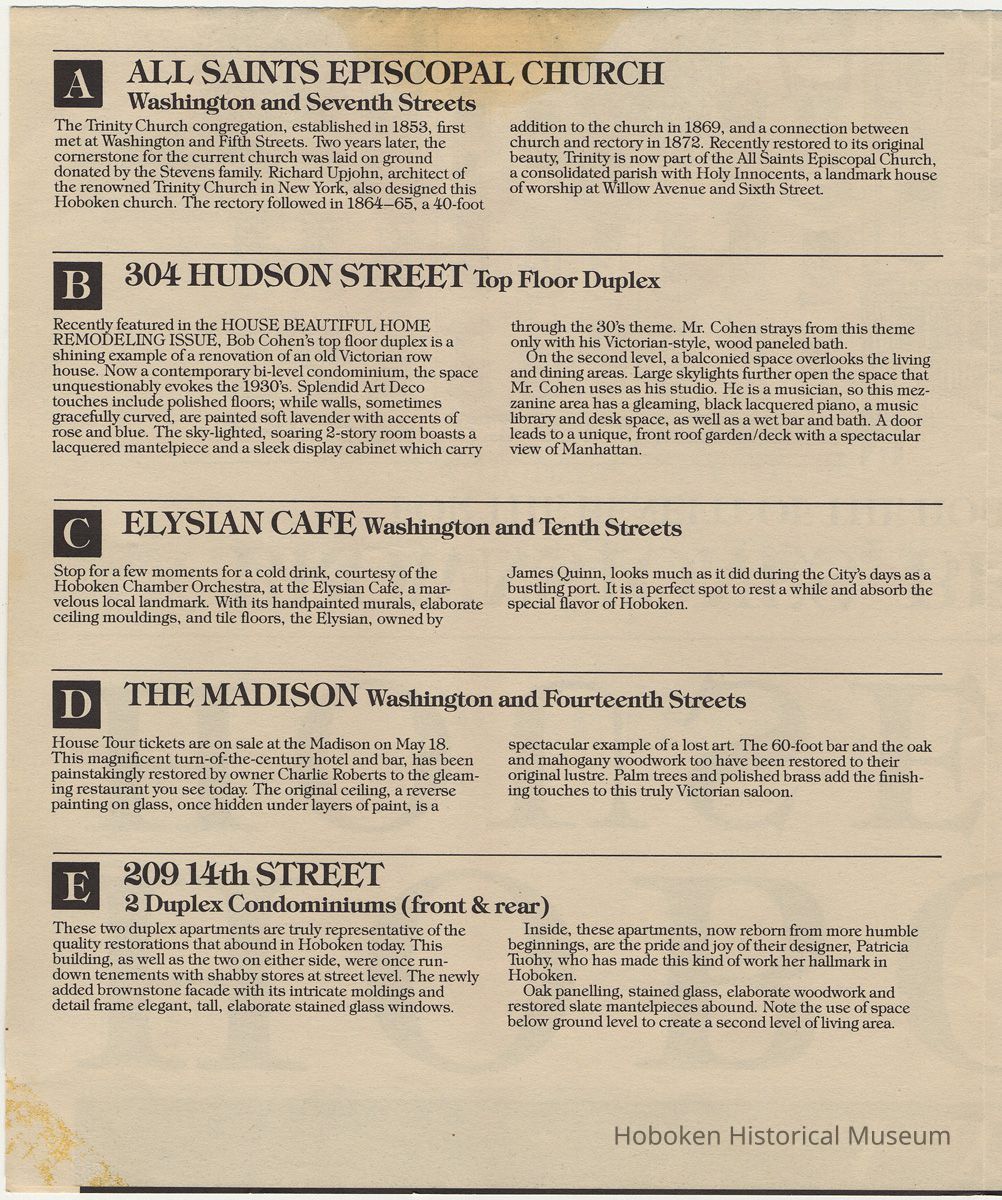 Poster & guide: A New Hoboken House Tour. May 18, 1986.