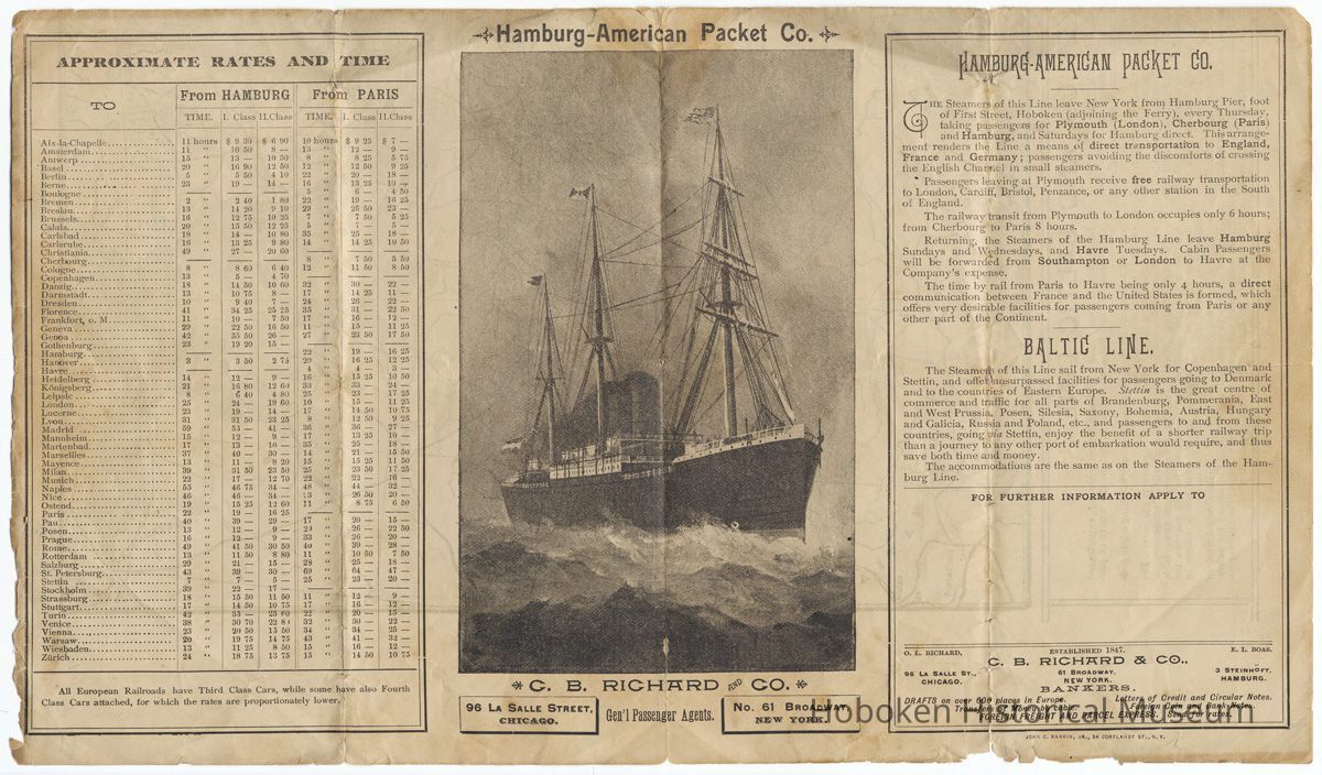 The company was known later as the Hamburg-American Line. Its passenger piers were in Hoboken (Piers 1 and 2 next to the Hoboken Ferry) until World War I.