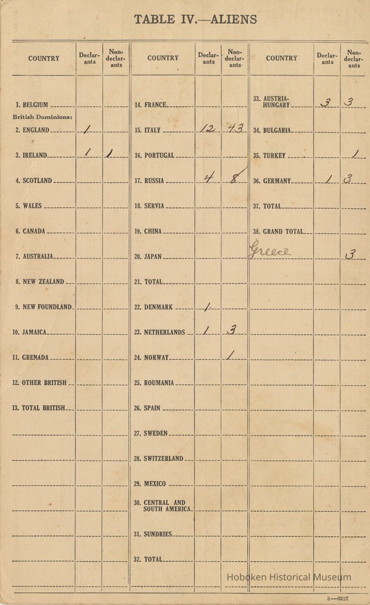 Notes: This item was originally from the files of the local Hoboken draft board; discarded at unknown date from records at Hoboken City Hall. Status: OK Status By: dw Status Date: 2008-05-19
