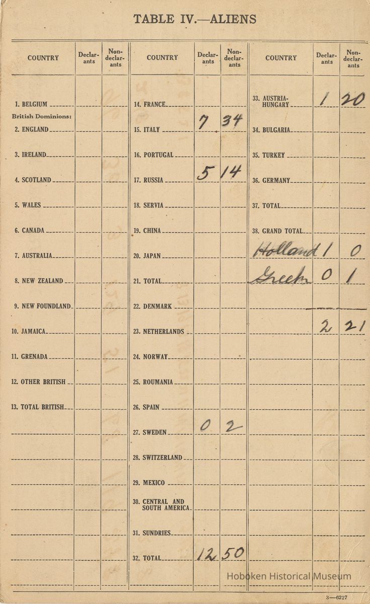 Notes: This item was originally from the files of the local Hoboken draft board; discarded at unknown date from records at Hoboken City Hall. Status: OK Status By: dw Status Date: 2008-05-19