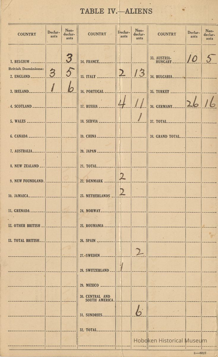 Notes: This item was originally from the files of the local Hoboken draft board; discarded at unknown date from records at Hoboken City Hall. Status: OK Status By: dw Status Date: 2008-05-19
