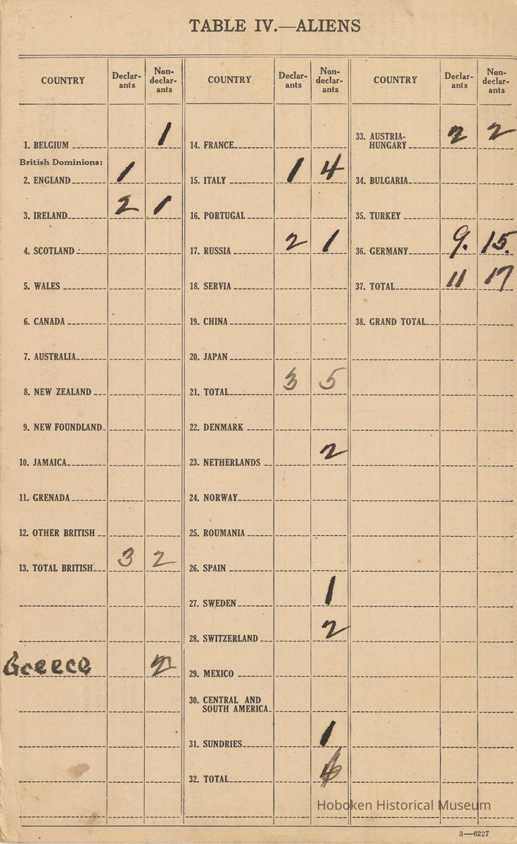 Notes: This item was originally from the files of the local Hoboken draft board; discarded at unknown date from records at Hoboken City Hall. Status: OK Status By: dw Status Date: 2008-05-19