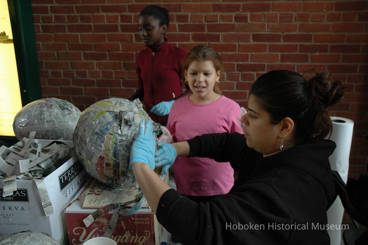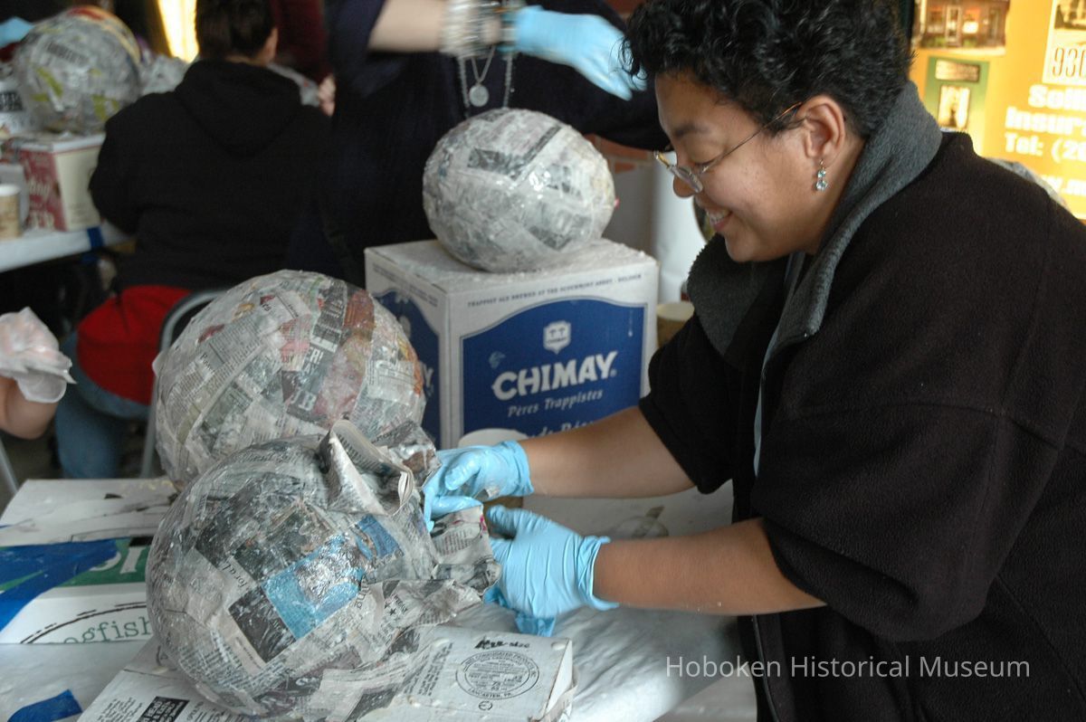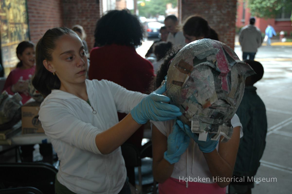 Color photos, 75, of mask making workshop at Hoboken Historical Museum, May 21, 2006.