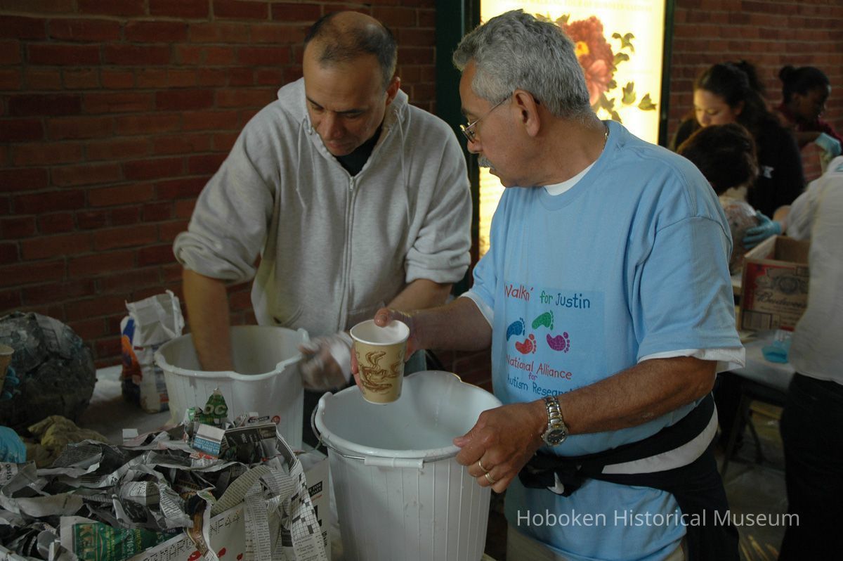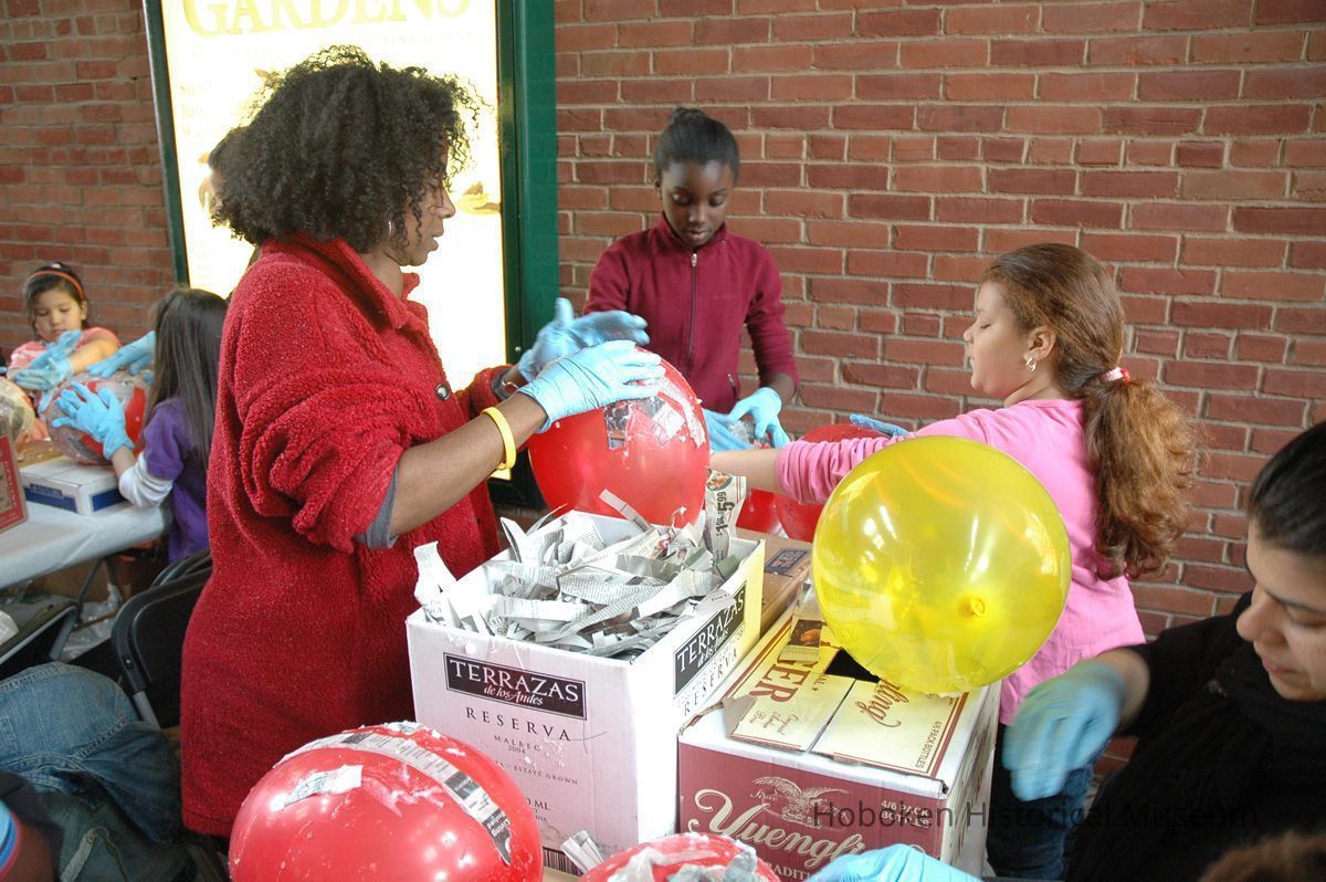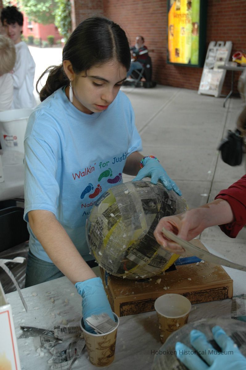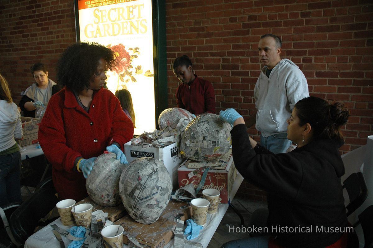 Color photos, 75, of mask making workshop at Hoboken Historical Museum, May 21, 2006.