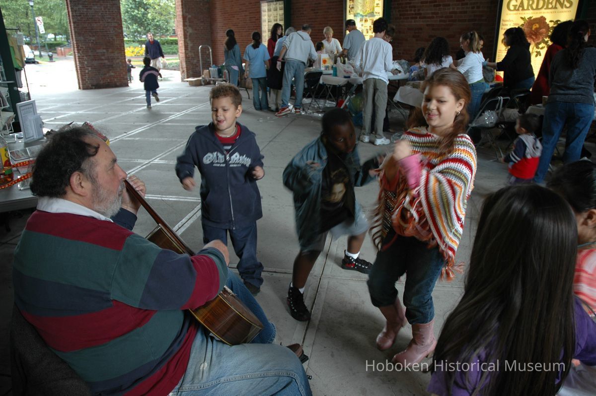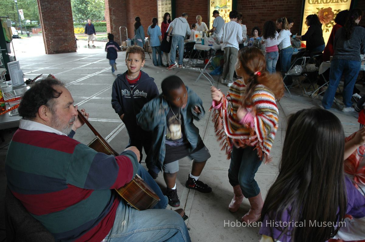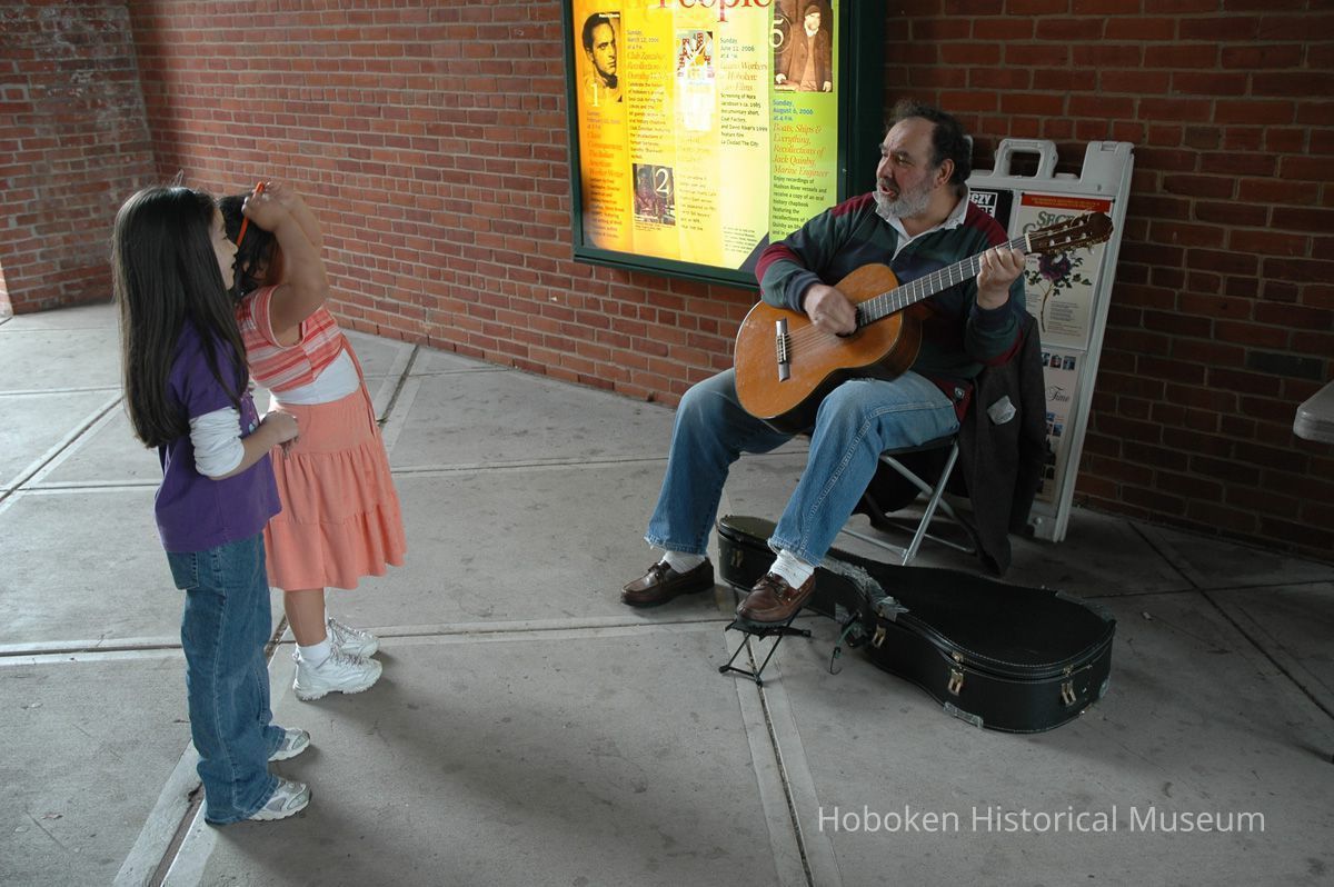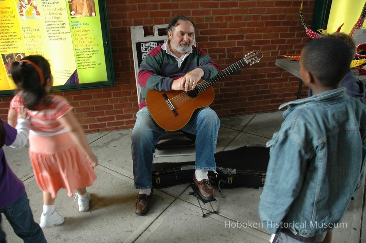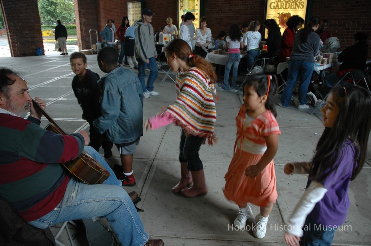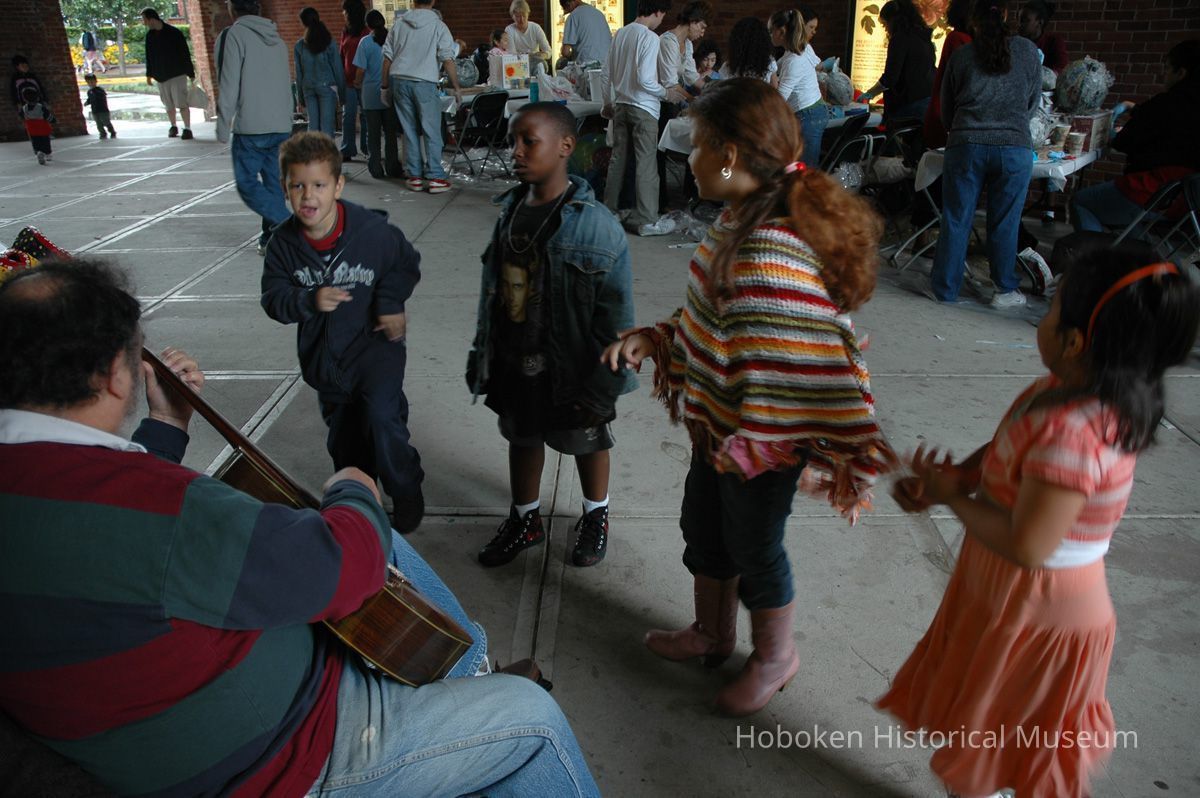 Notes: From The Vejigante and the Folk Festivals of Puerto Rico By Edwin Fontánez © 1996. Text below from exhibit of the masks in August-September 2006. ________________ The Vejigante (bay-he-GAHN-tay) is a fantastic, colorful character introduced into carnival celebrations hundreds of years ago. He is a classic example of the blending of African, Spanish, and Caribbean influences in Puerto Rican culture. During the carnival celebrations in Loiza Aldea and Ponce, the Vejigantes roam the streets in groups and chase children with their vejigas. The Vejigante is such an old character that he is even mentioned in the classic novel Don Quixote, written in 1605. Carnival in Ponce (pawn-say), a major city in the south, begins February 2 on "Dia de la Candelaria" (Day of the Bonfire). The masks are are characterized by their elaborate construction. Most are made of papier-mâché (shredded newspapers) and adorned with many horns and bells. The masks can be as big and elaborate as the artist's imagination. Commonly, they have a demonic or devilish appearance, but others resemble fantastic animals. __________________ The masks were made at the Hoboken Historical Museum during May and June of 2006. The mask-making classes were conducted by artist Ray Guzman with more than 25 children and parents participating. The mask starts with a balloon, then papier-mâché is applied over it along with horns and facial features before a final application of acrylic paint. Most who attended came to all four workshops and demonstrated a strong commitment to the project and created these incredible masks. The Museum wishes to thank artist Ray Guzman for teaching the classes, and a special thanks to both Tom Olivieri and Museum Trustee Inéz Garcia-Kiem for their advice and support. The project was funded by the Hudson County Office of Cultural Affairs, Tom DeGise, County Executive. Original or Copy: Digital copy Status: OK Status By: dw Status Date: 2006-11-28