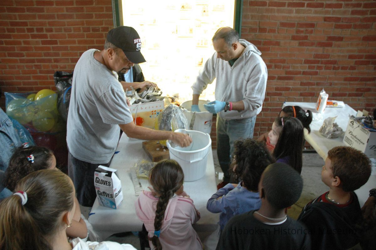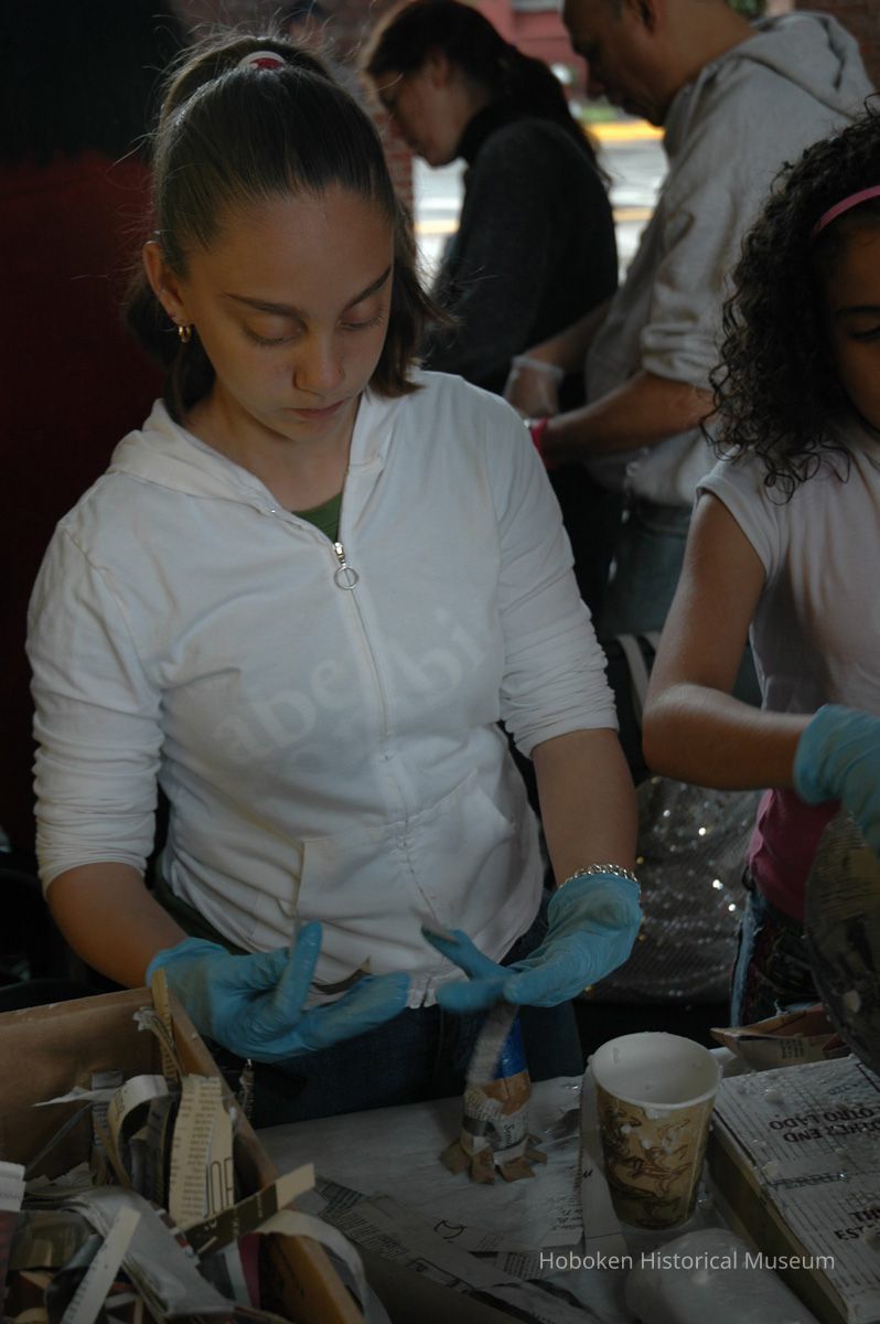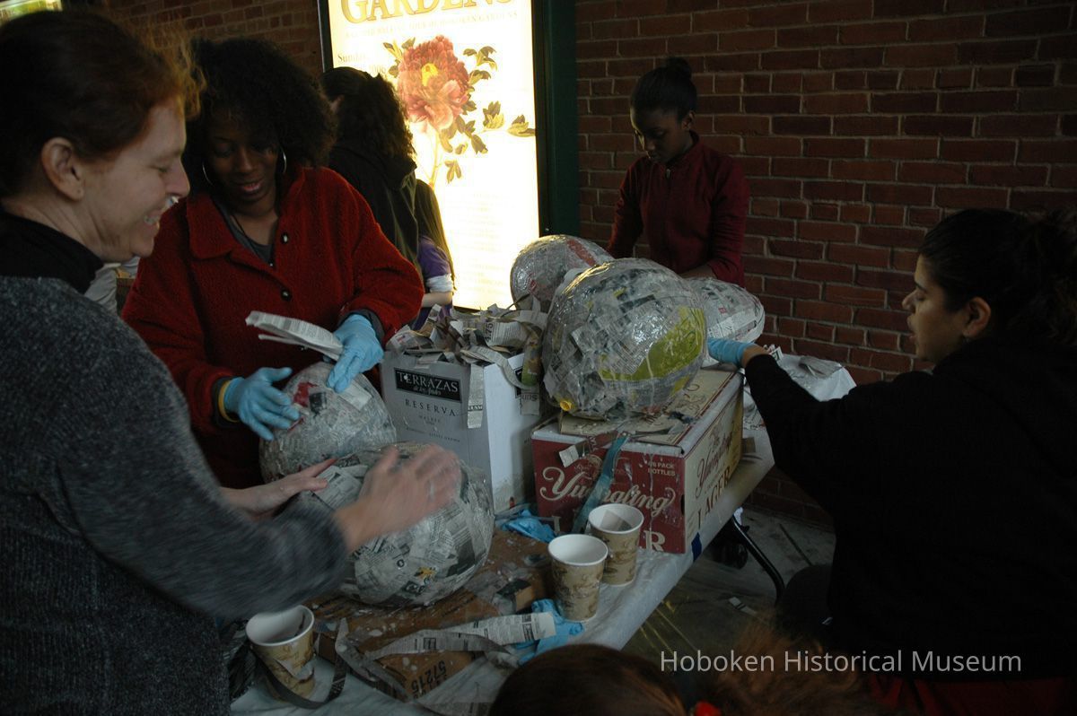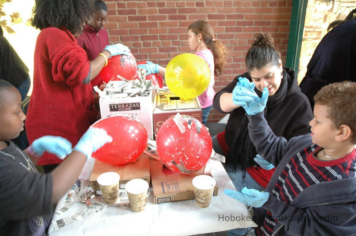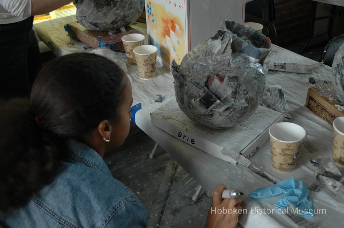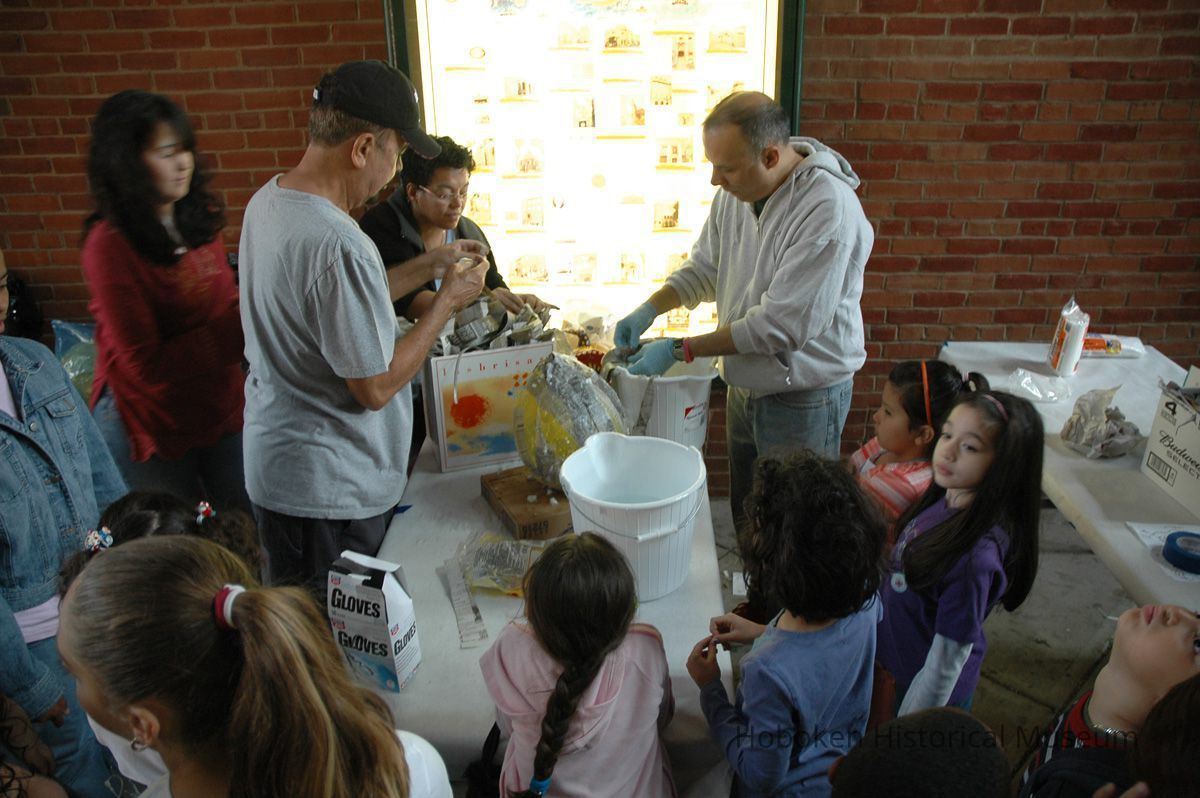 Color photos, 75, of mask making workshop at Hoboken Historical Museum, May 21, 2006.