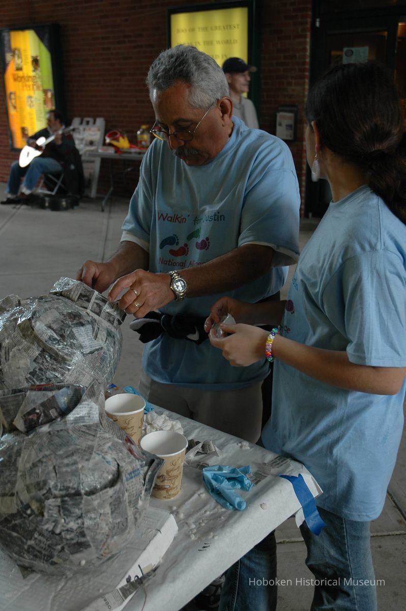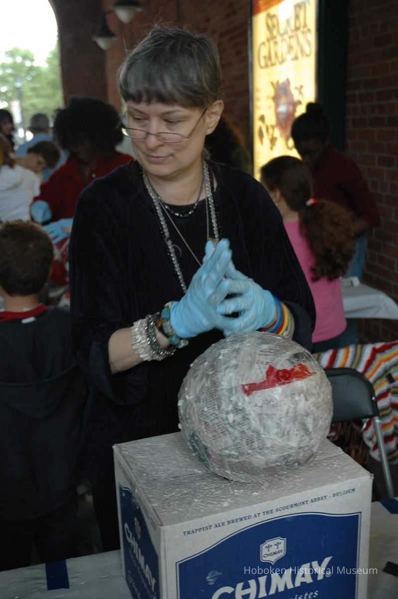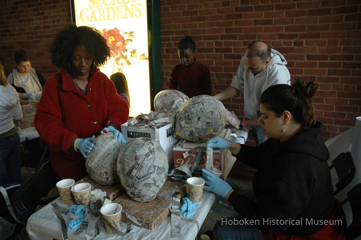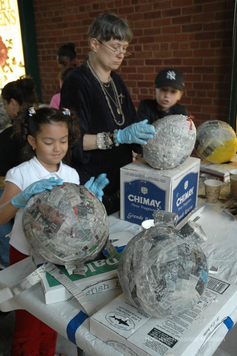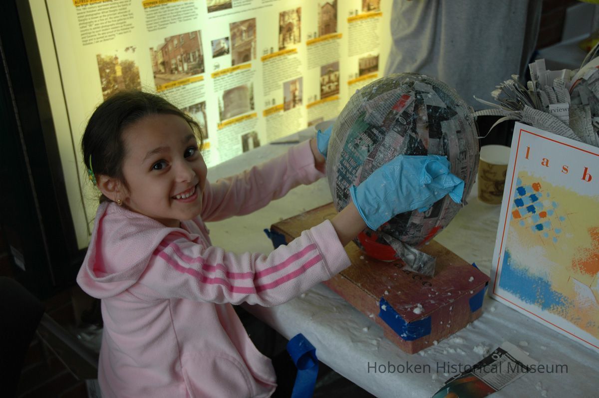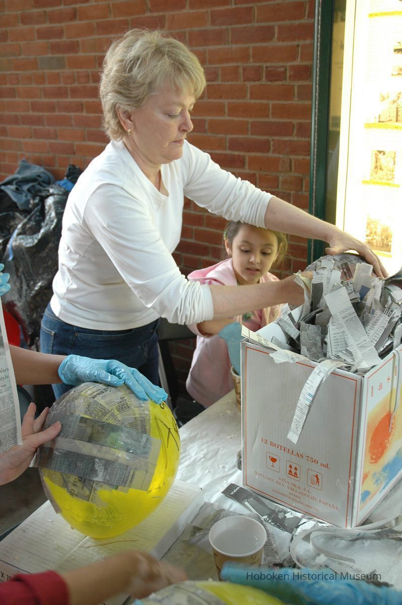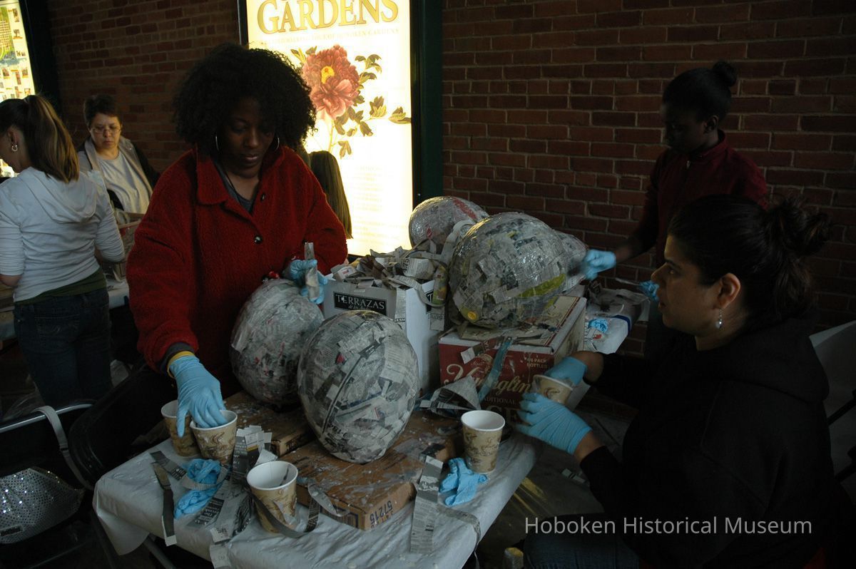 Color photos, 75, of mask making workshop at Hoboken Historical Museum, May 21, 2006.