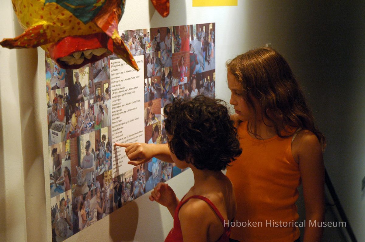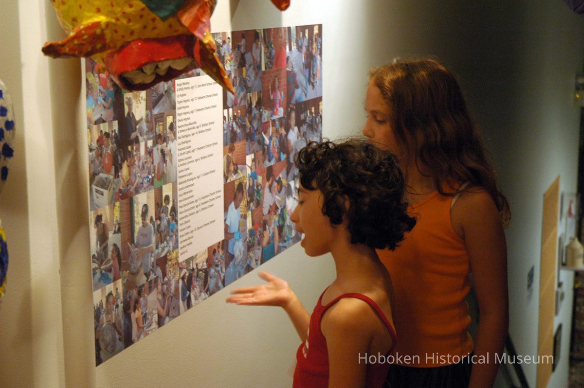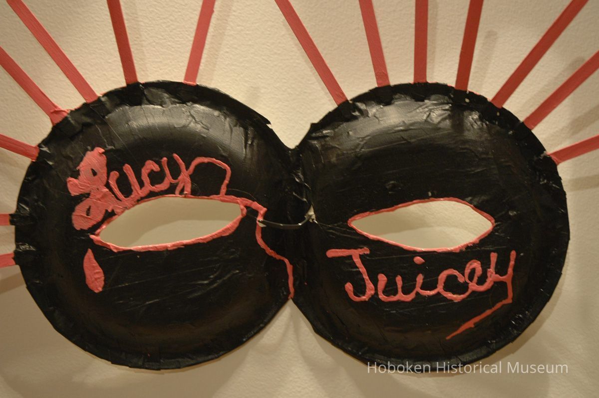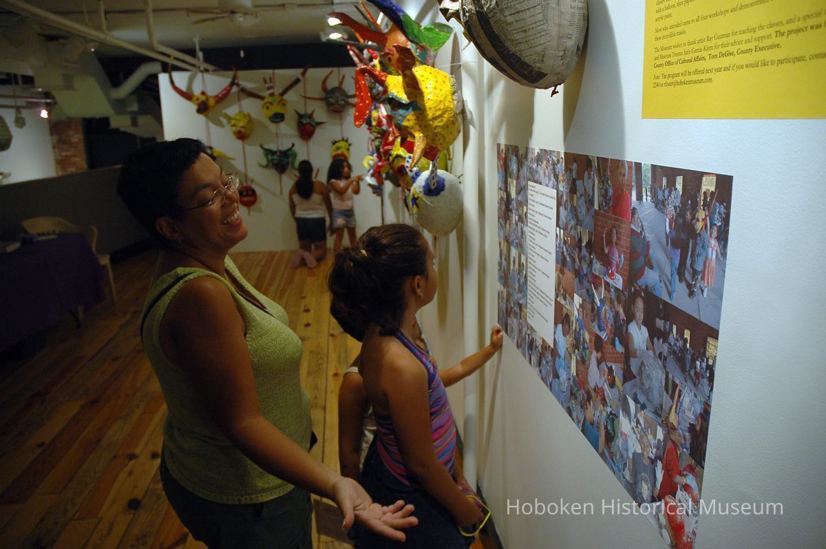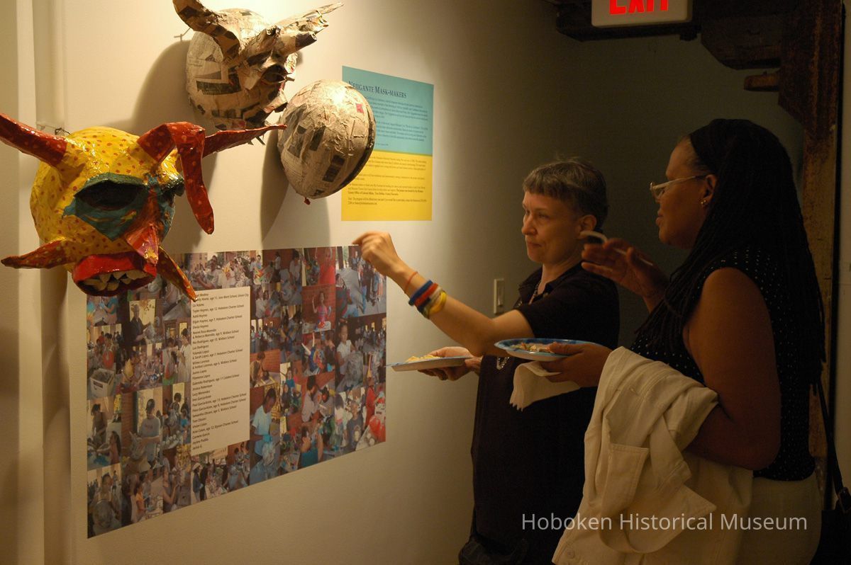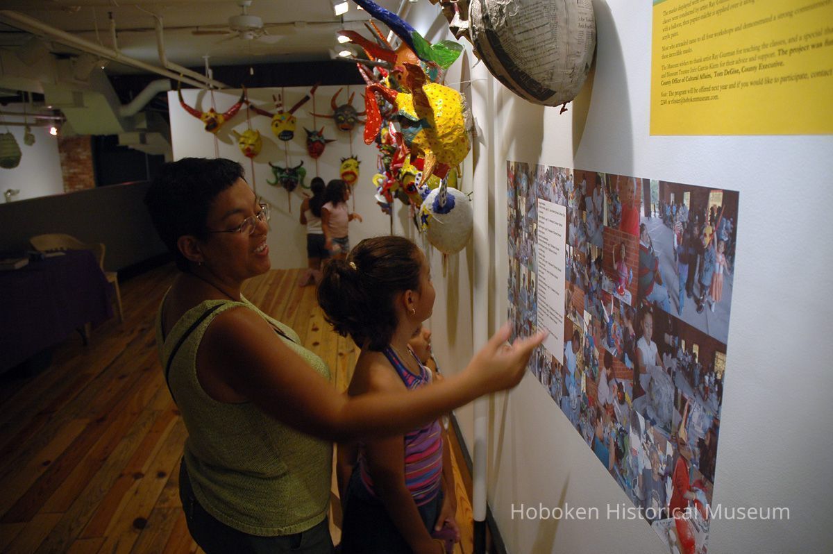 Notes: From The Vejigante and the Folk Festivals of Puerto Rico By Edwin Fontánez © 1996. Text below from exhibit of the masks in August-September 2006. ________________ The Vejigante (bay-he-GAHN-tay) is a fantastic, colorful character introduced into carnival celebrations hundreds of years ago. He is a classic example of the blending of African, Spanish, and Caribbean influences in Puerto Rican culture. During the carnival celebrations in Loiza Aldea and Ponce, the Vejigantes roam the streets in groups and chase children with their vejigas. The Vejigante is such an old character that he is even mentioned in the classic novel Don Quixote, written in 1605. Carnival in Ponce (pawn-say), a major city in the south, begins February 2 on "Dia de la Candelaria" (Day of the Bonfire). The masks are are characterized by their elaborate construction. Most are made of papier-mâché (shredded newspapers) and adorned with many horns and bells. The masks can be as big and elaborate as the artist's imagination. Commonly, they have a demonic or devilish appearance, but others resemble fantastic animals. __________________ The masks were made at the Hoboken Historical Museum during May and June of 2006. The mask-making classes were conducted by artist Ray Guzman with more than 25 children and parents participating. The mask starts with a balloon, then papier-mâché is applied over it along with horns and facial features before a final application of acrylic paint. Most who attended came to all four workshops and demonstrated a strong commitment to the project and created these incredible masks. The Museum wishes to thank artist Ray Guzman for teaching the classes, and a special thanks to both Tom Olivieri and Museum Trustee Inéz Garcia-Kiem for their advice and support. The project was funded by the Hudson County Office of Cultural Affairs, Tom DeGise, County Executive. Original or Copy: Digital copy Status: OK Status By: dw Status Date: 2006-11-28