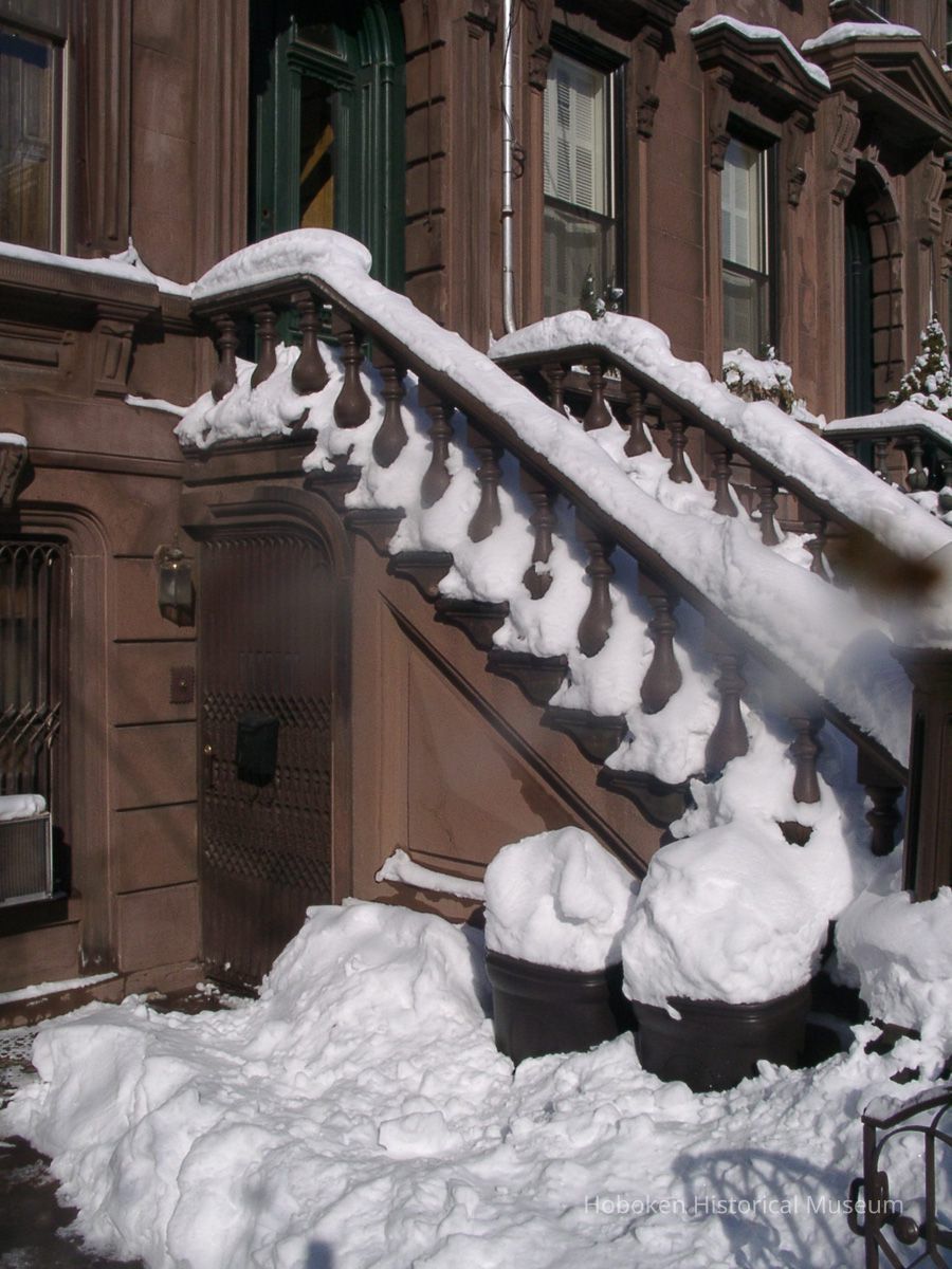 Color photos, 4, of exteriors the day after a snowstorm (blizzard), Hoboken, February 13, 2006.