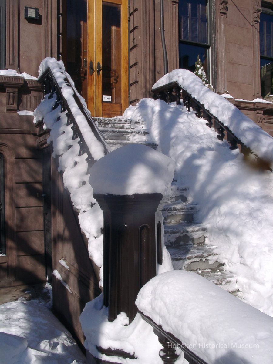 Color photos, 4, of exteriors the day after a snowstorm (blizzard), Hoboken, February 13, 2006.