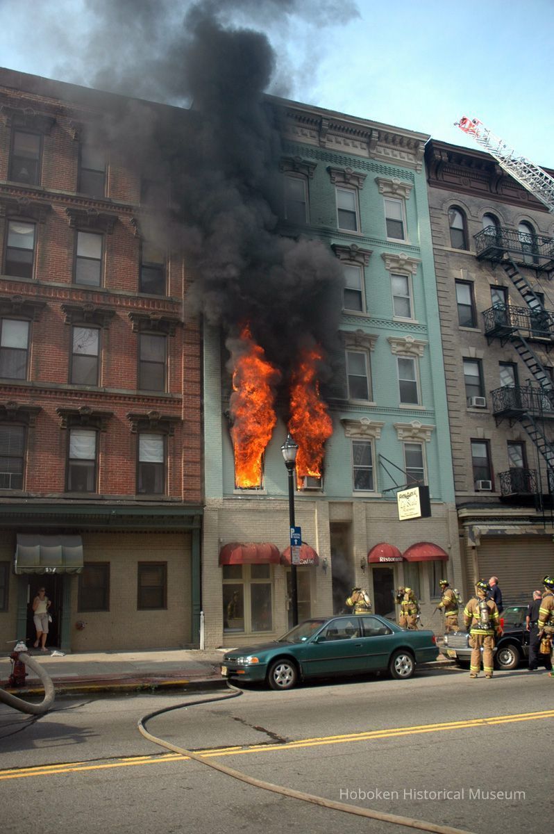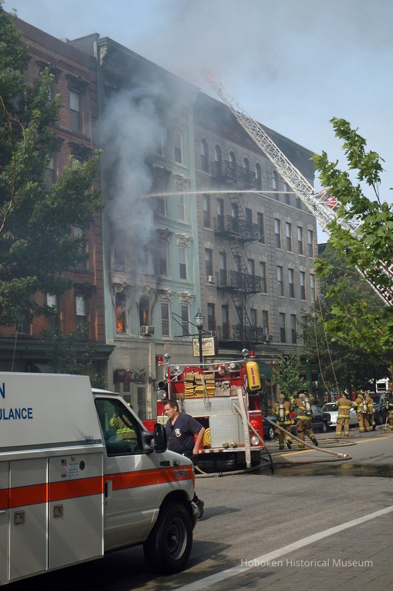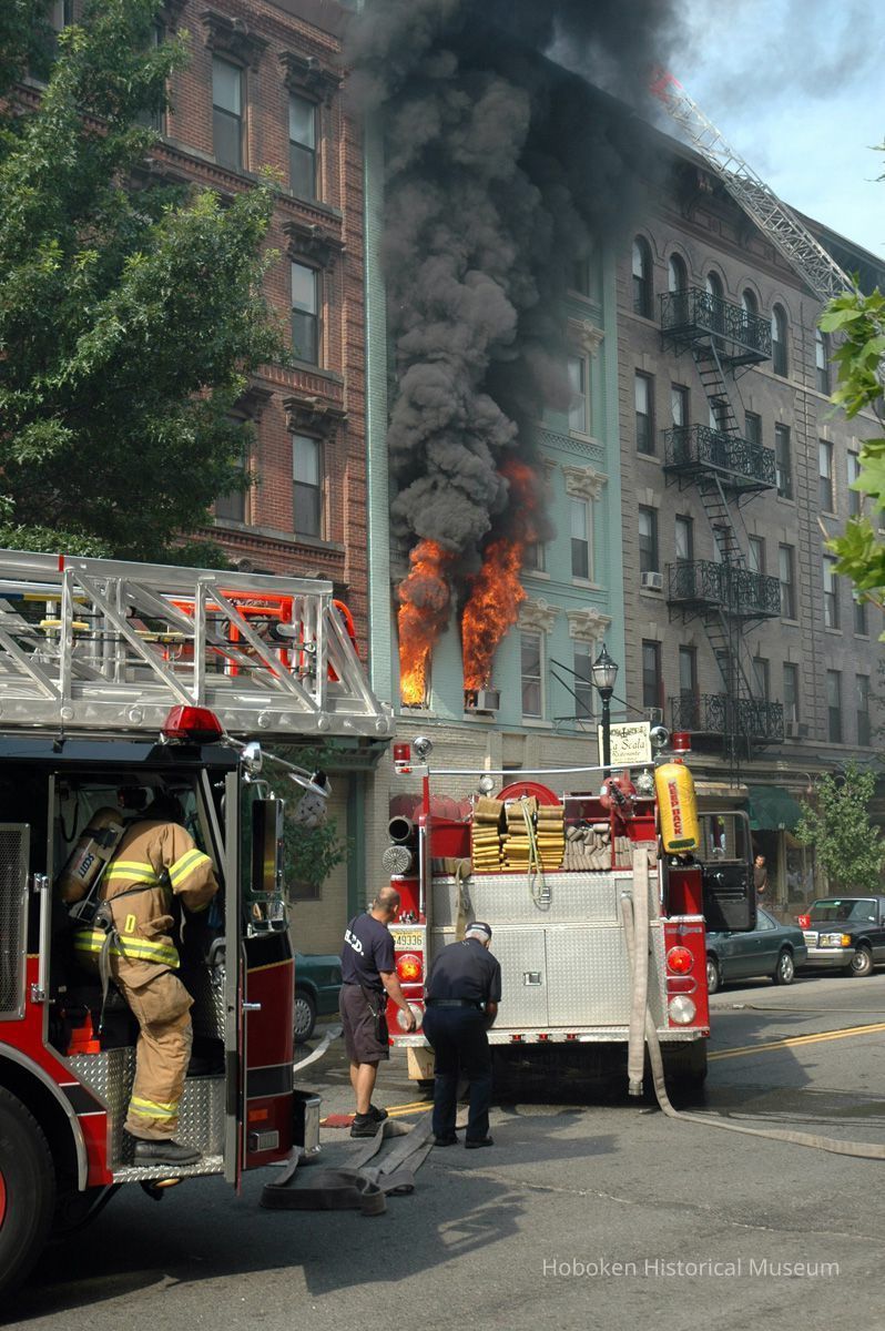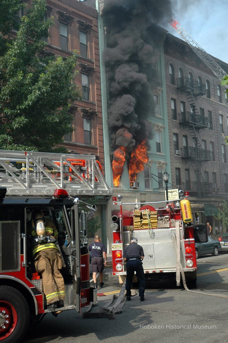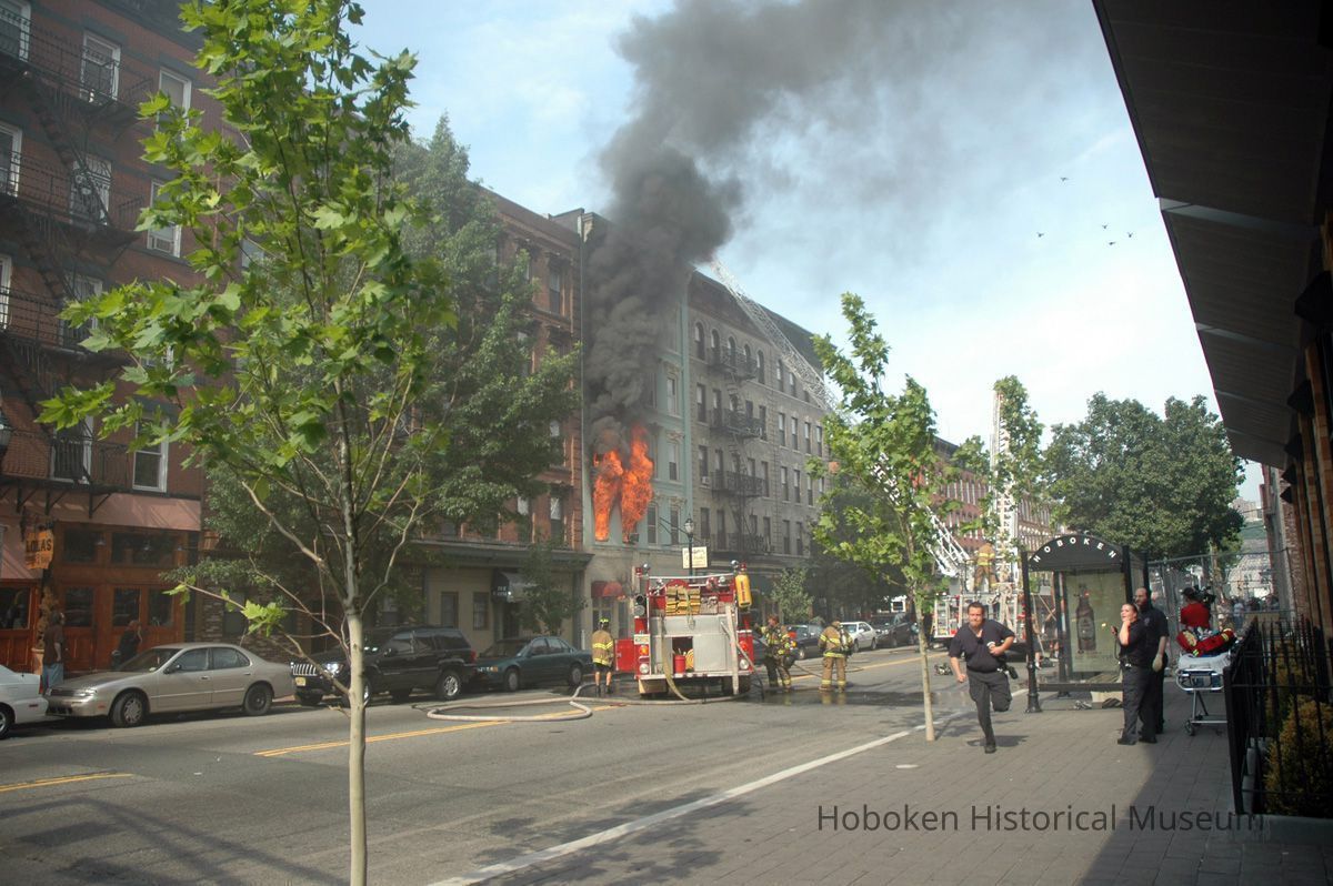 Color photos, 21, of fire at 159 Fourteenth St., Hoboken, July 1, 2006. Photographs by Robert Foster.