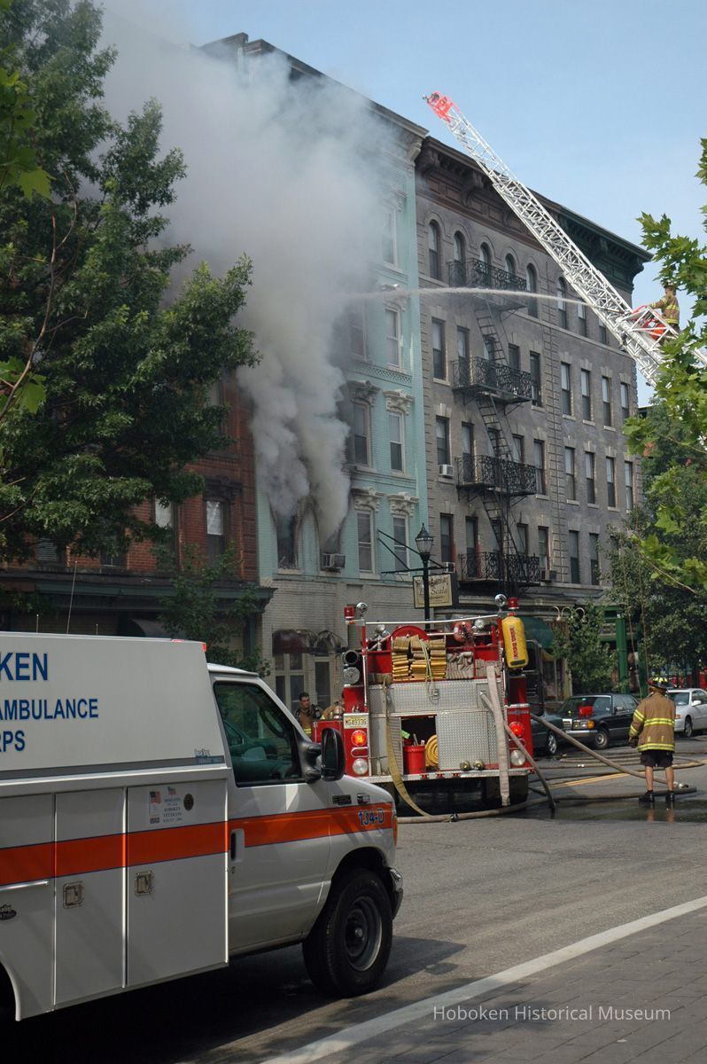 Color photographs, 21 (of 50 available), of fire at 159 Fourteenth St., Hoboken, July 1, 2006.