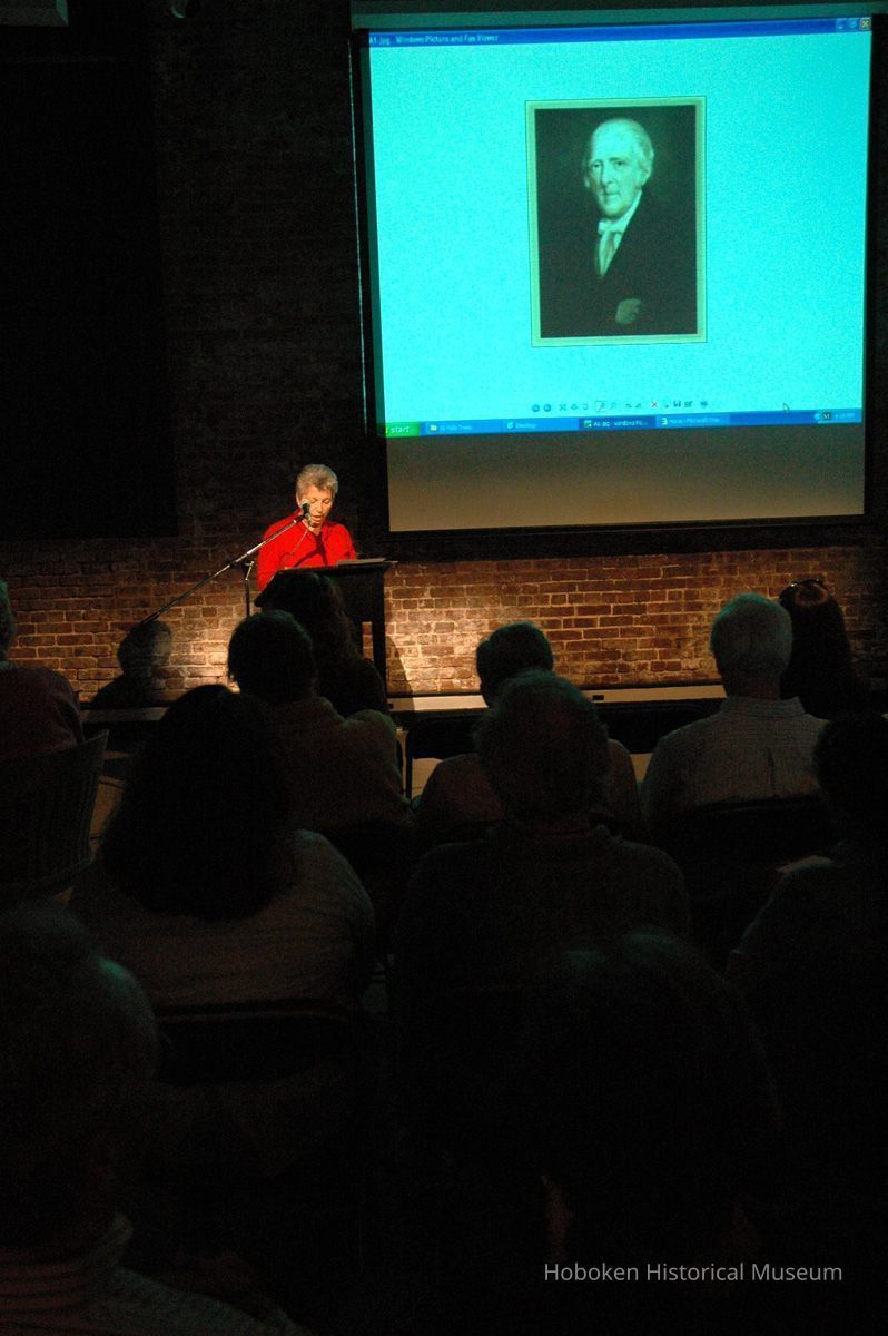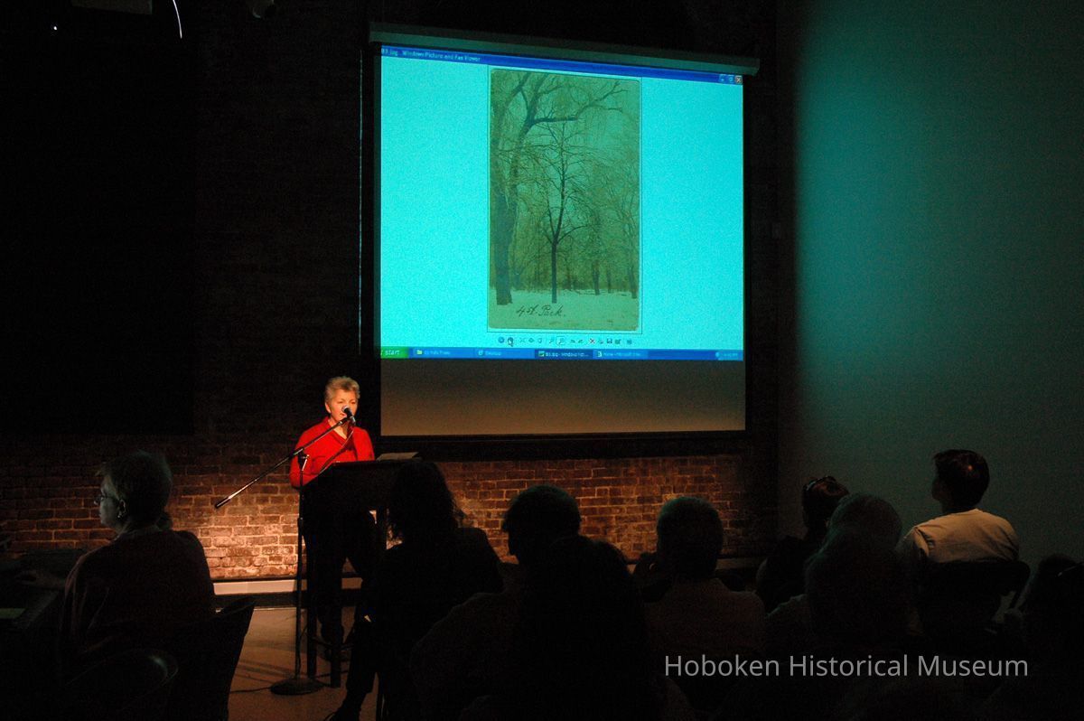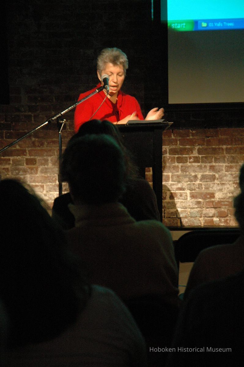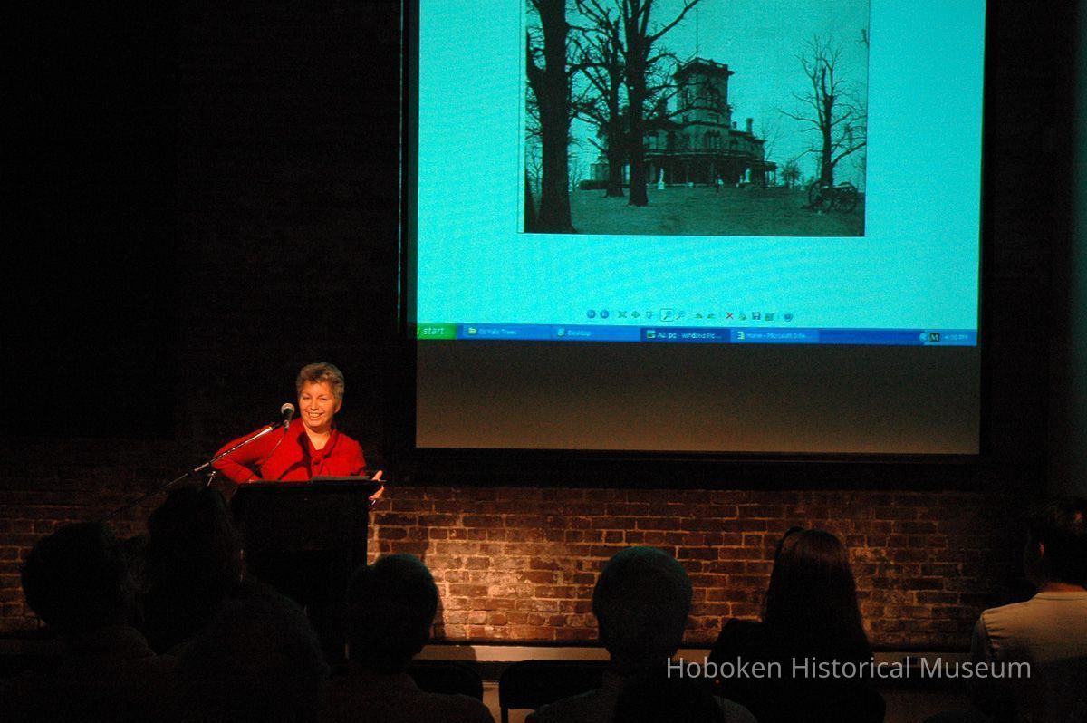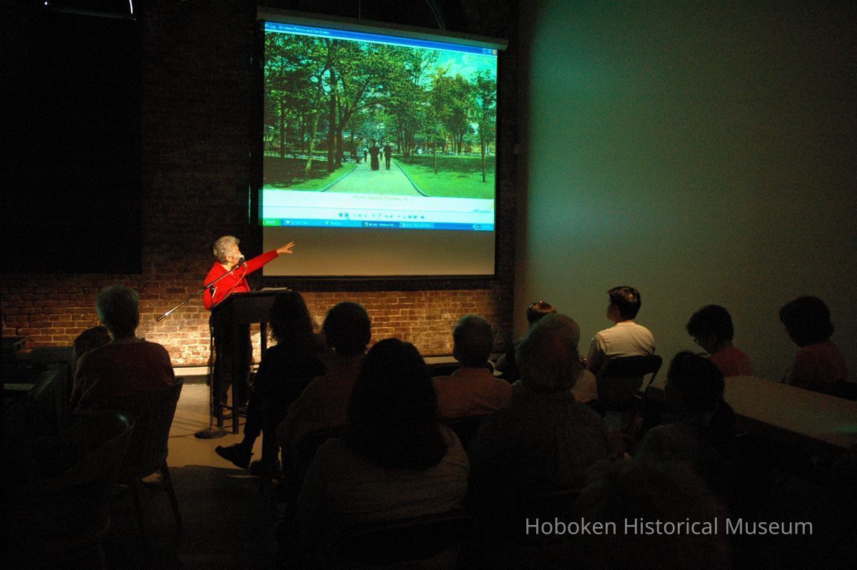 Color photographs, seven, of Valerie D'Antonio presenting a slide lecture at the Hoboken Historical Museum as a 'kick-off' for the Museum's annual Secret Gardens Tour, Hoboken, May 20, 2006.