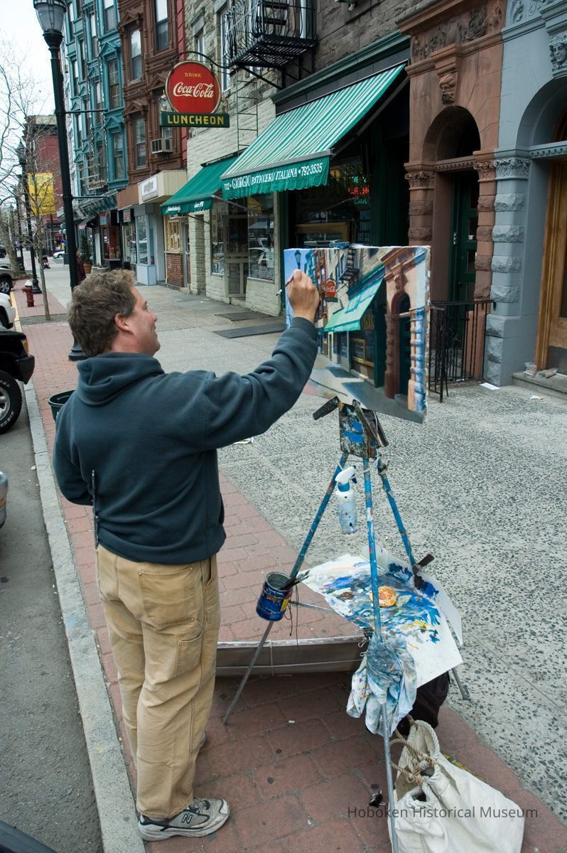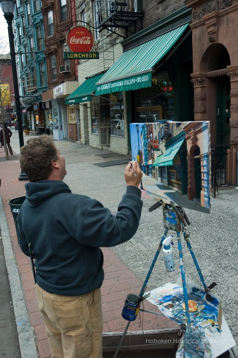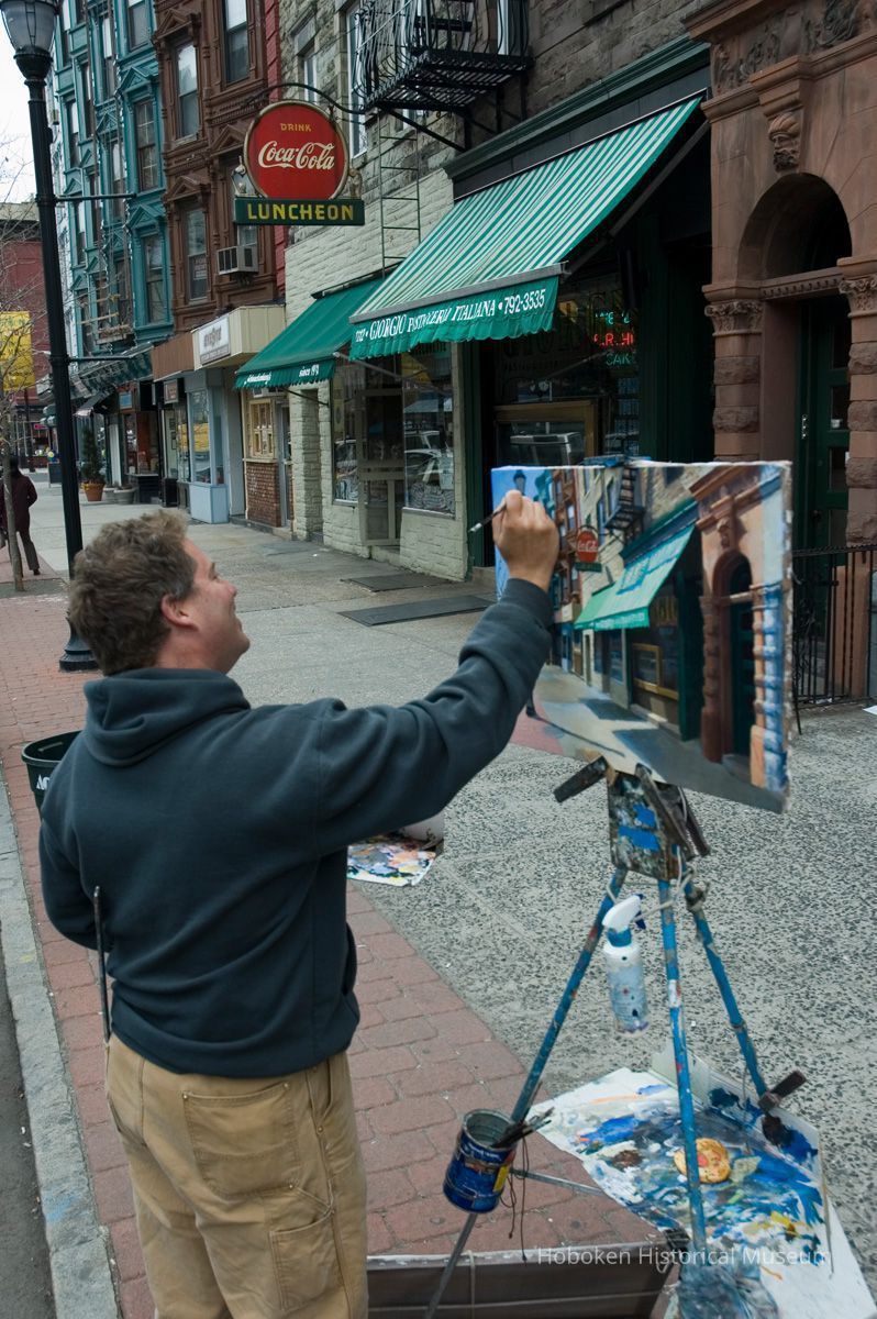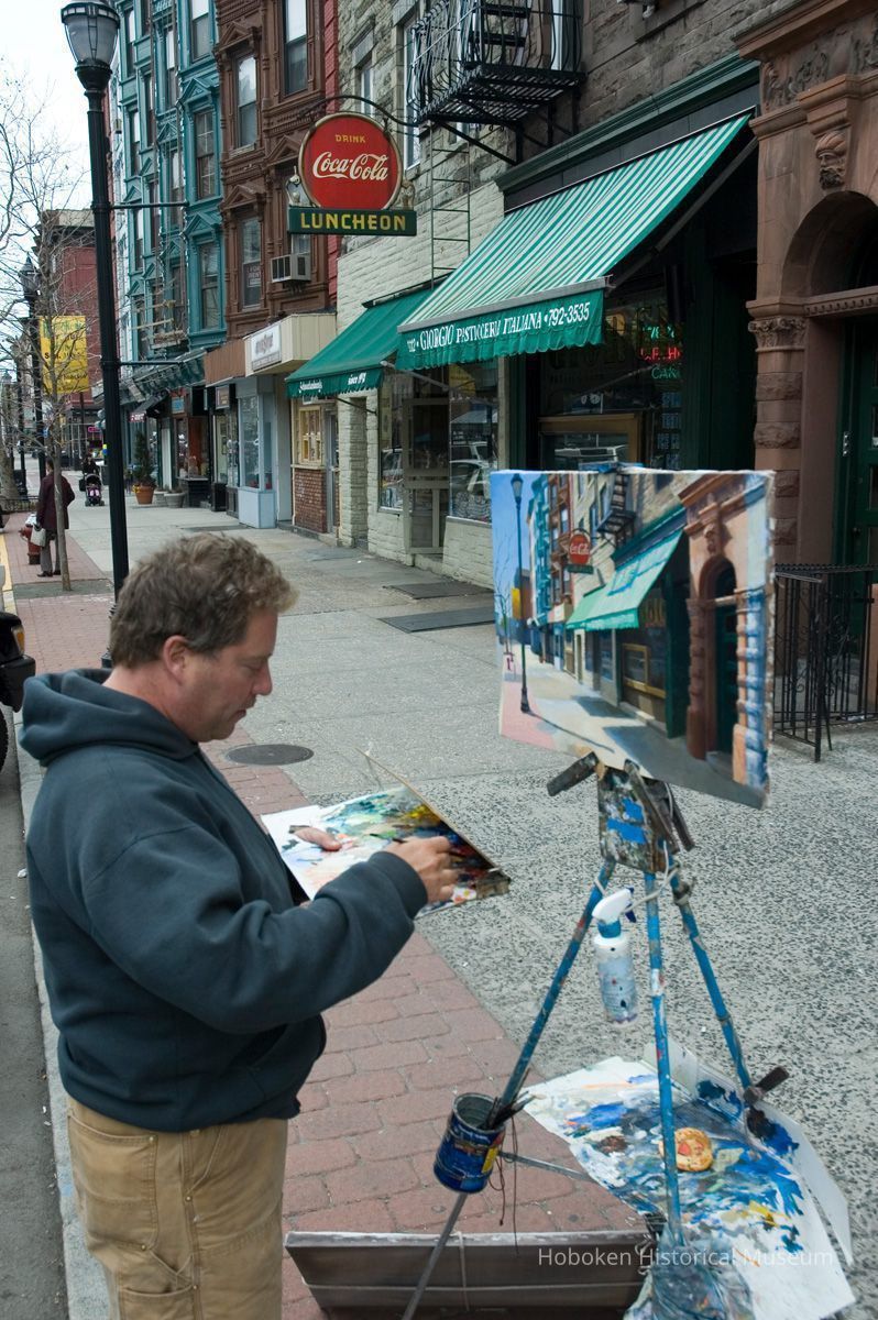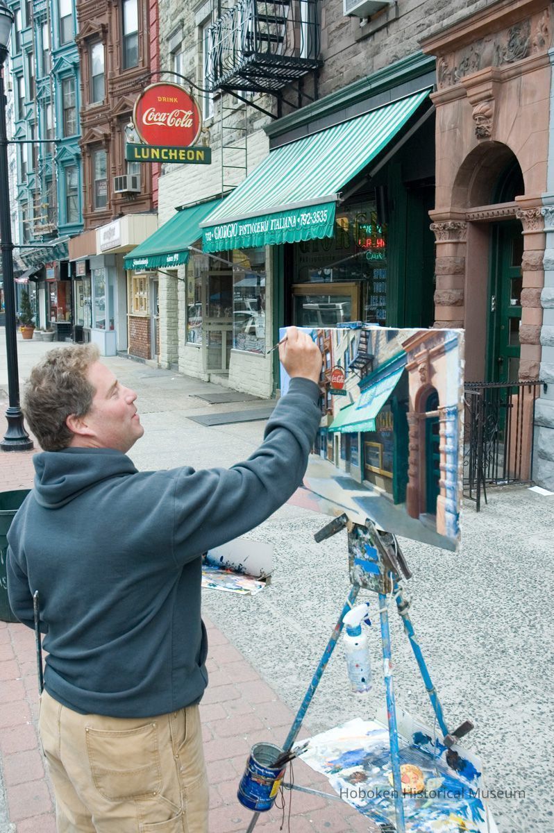 Giorgio Pasticerria Italiana, 1112 Washington St. Hanavan is working with acrylic paints on canvas. See photo catalog 2006.066.0001 for views of the completed painting.