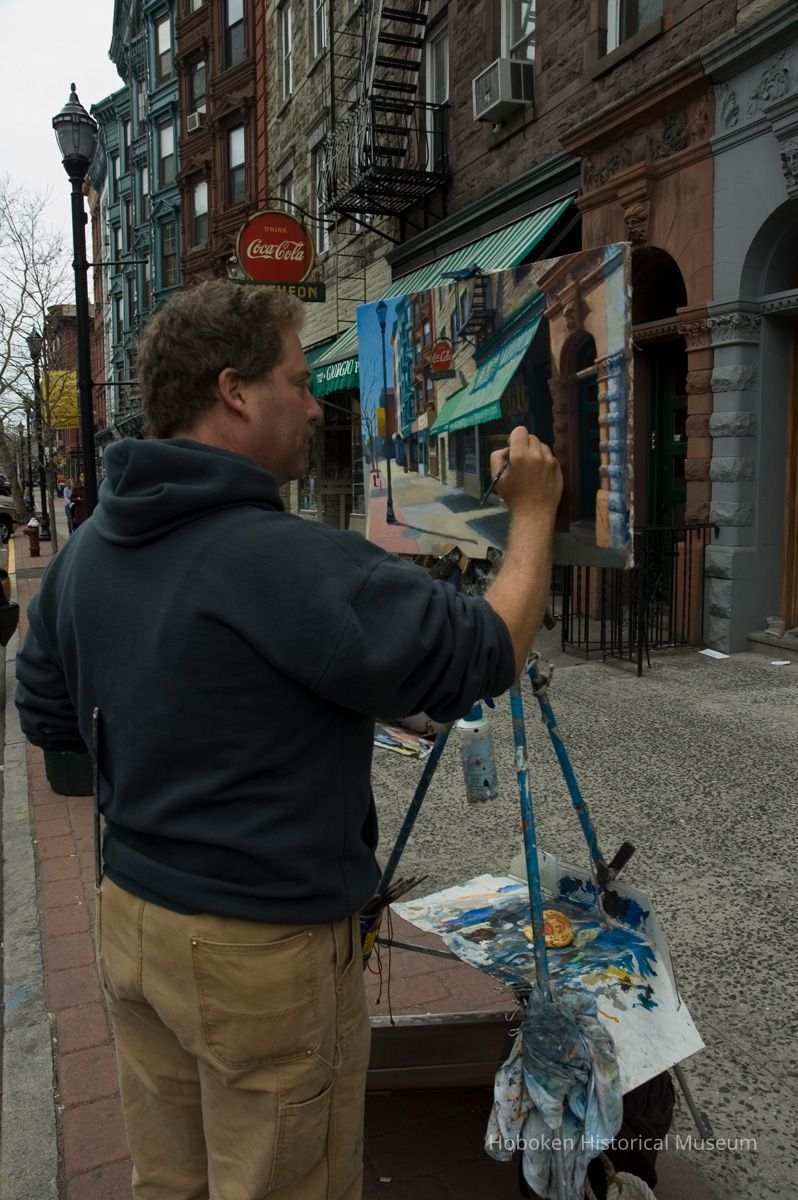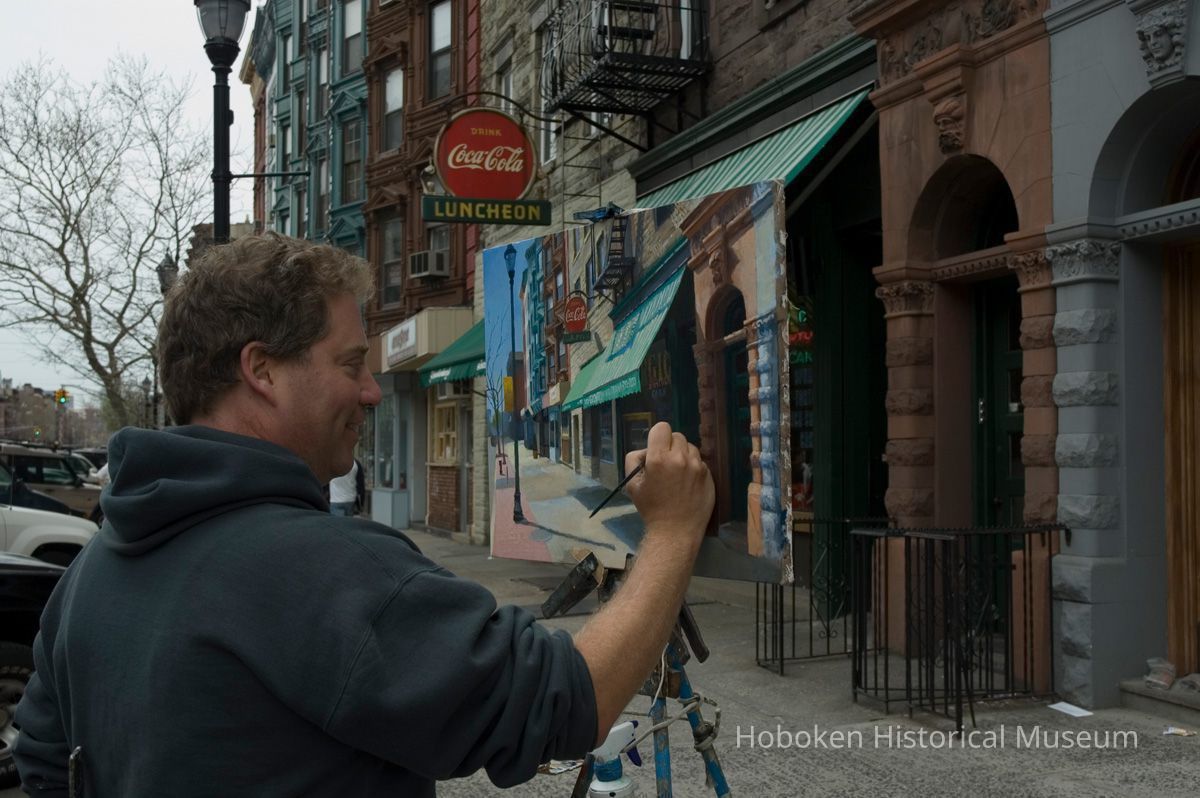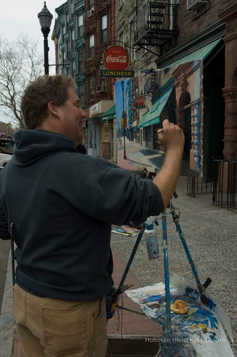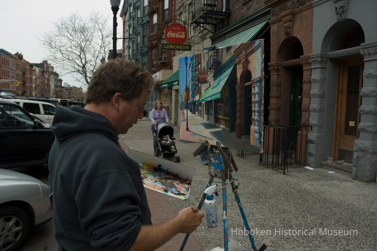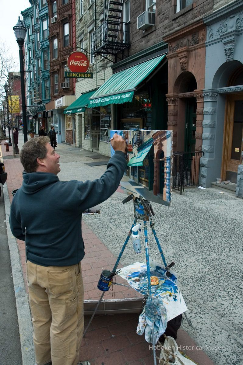 Giorgio Pasticerria Italiana, 1112 Washington St. Hanavan is working with acrylic paints on canvas. See photo catalog 2006.066.0001 for views of the completed painting.