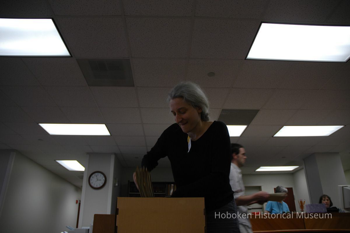 Color photos, 4, of Holly Metz doing research for Hoboken Historical Museum, Trenton, May 4, 2006.