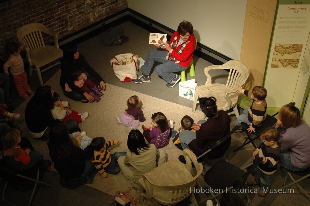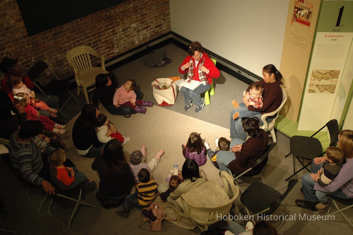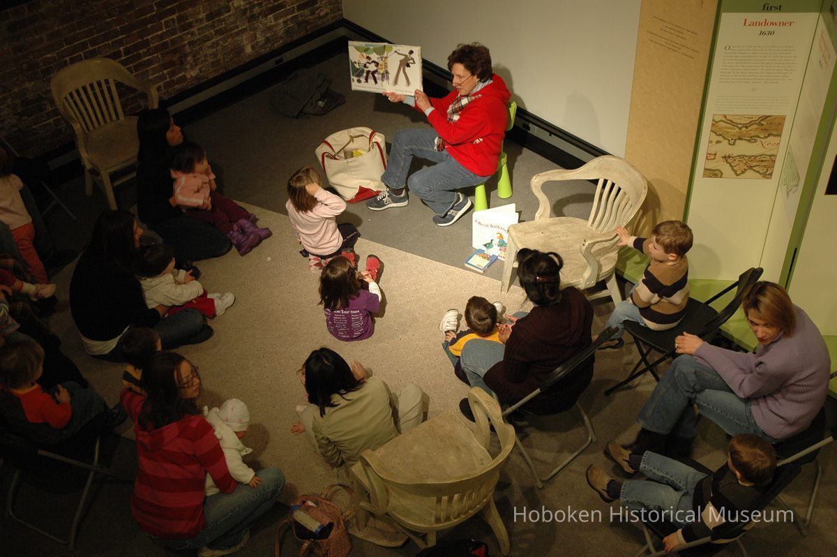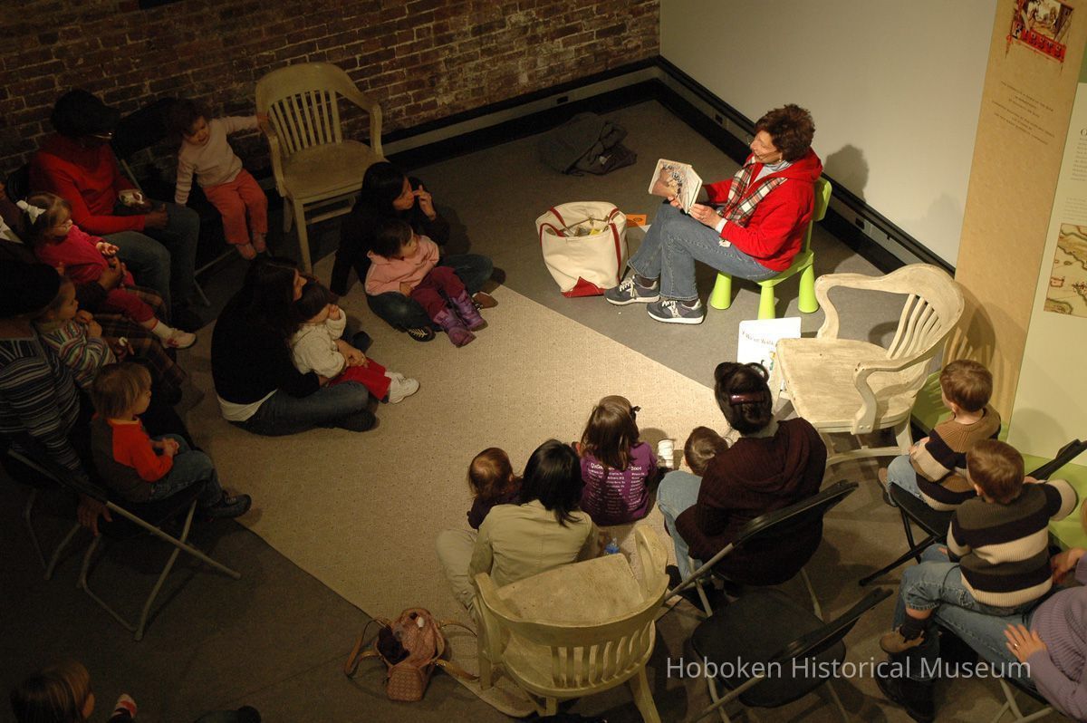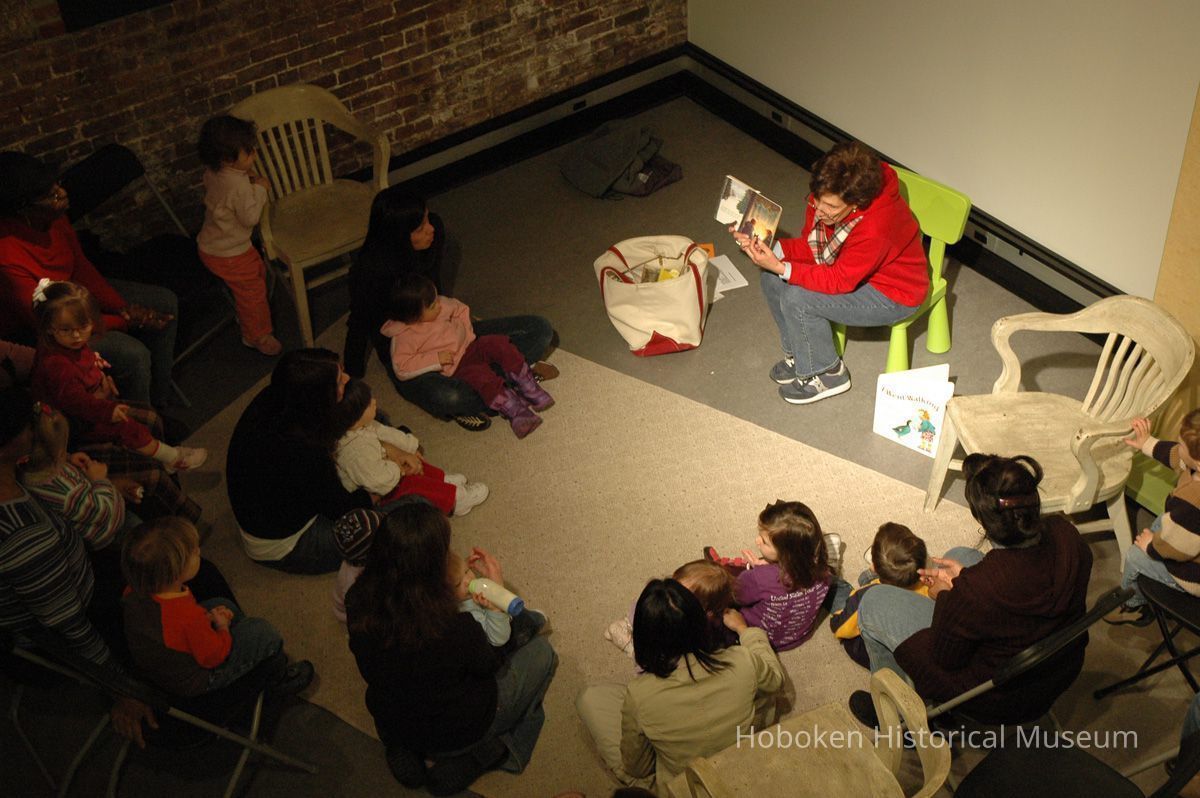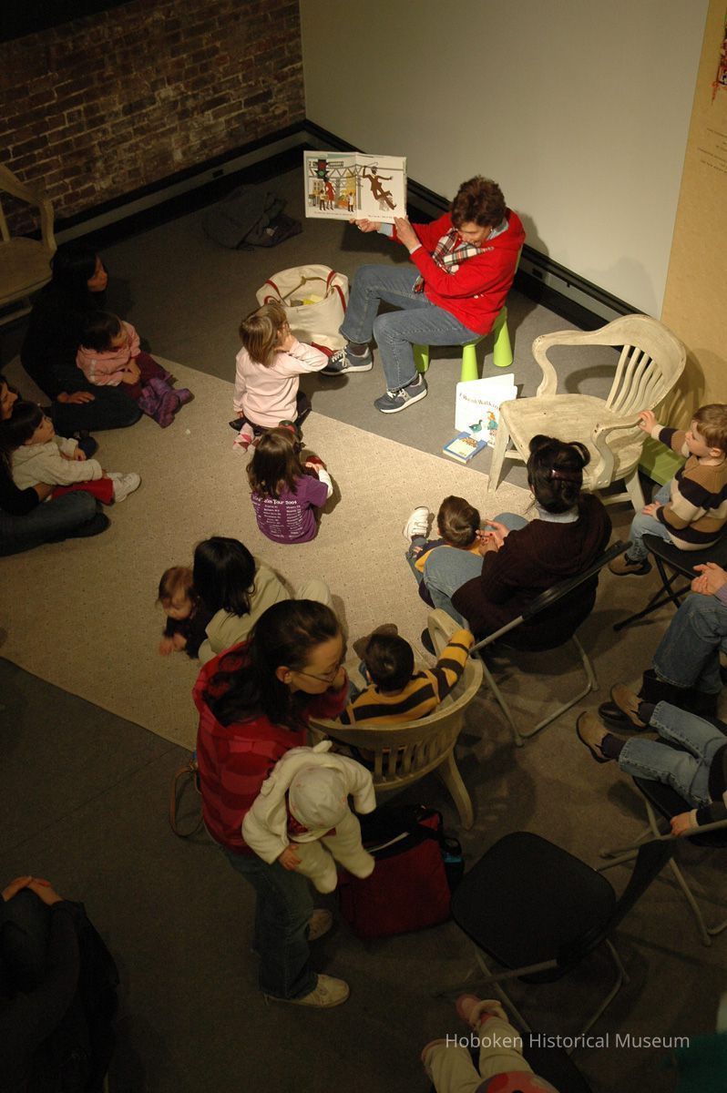 Color photographs, twenty, of Penny Metsch reading to a Story Time children's group, Hoboken Historical Museum, Hoboken, March 2, 2006.