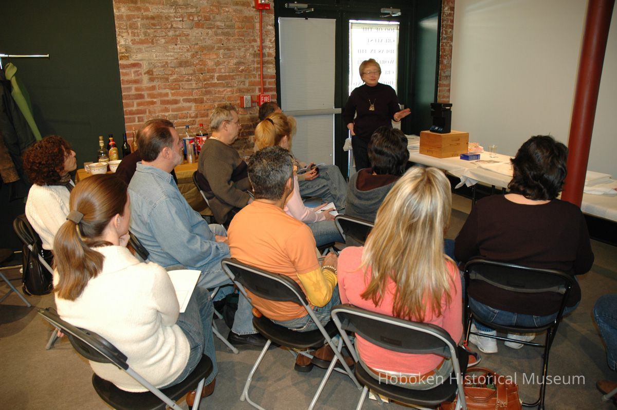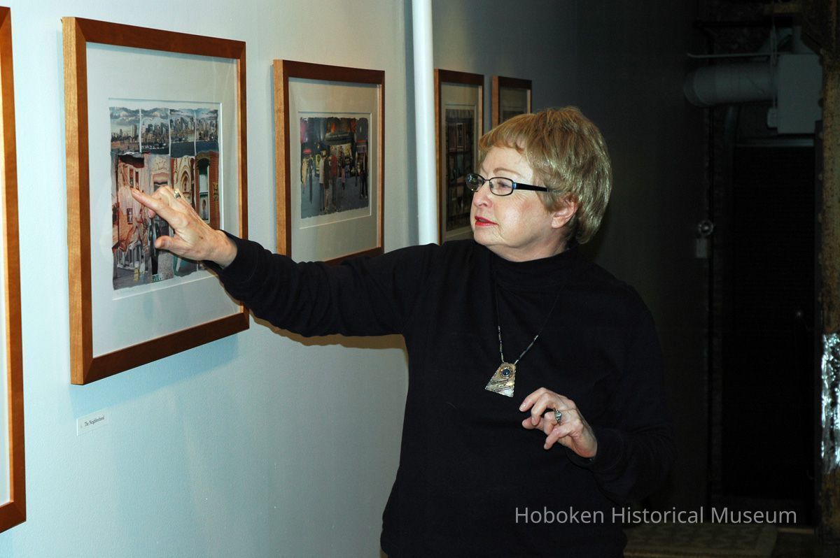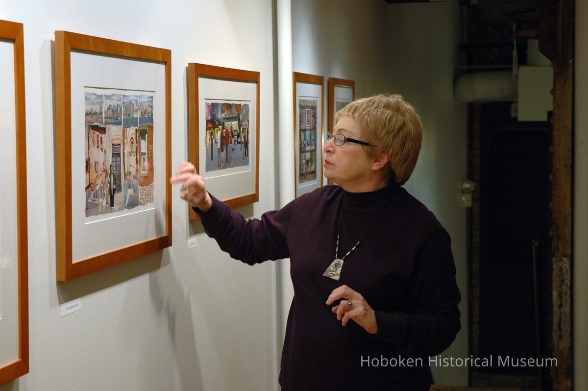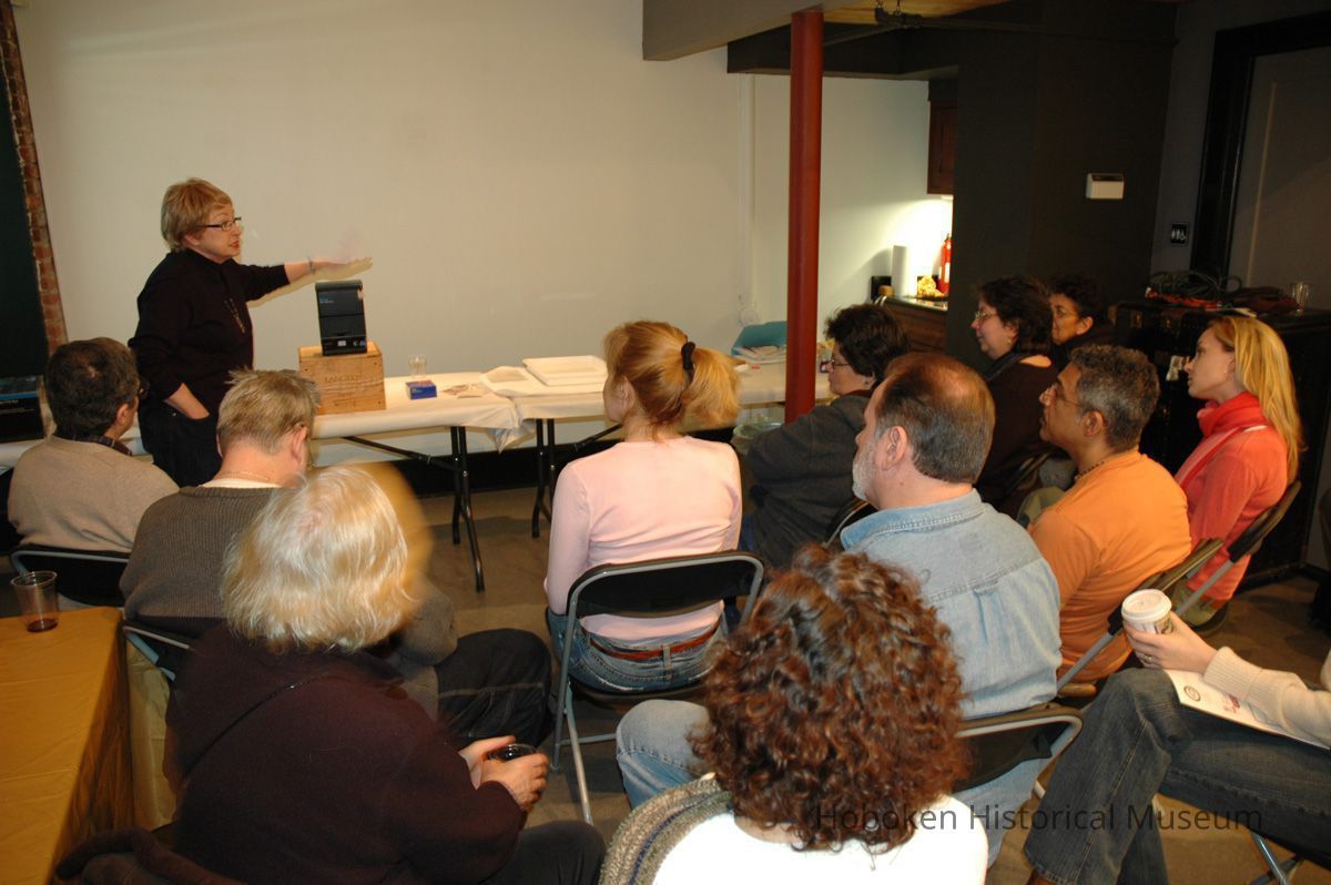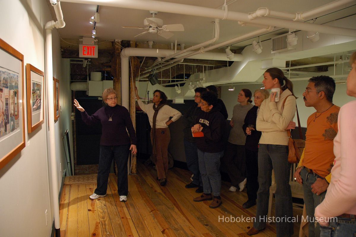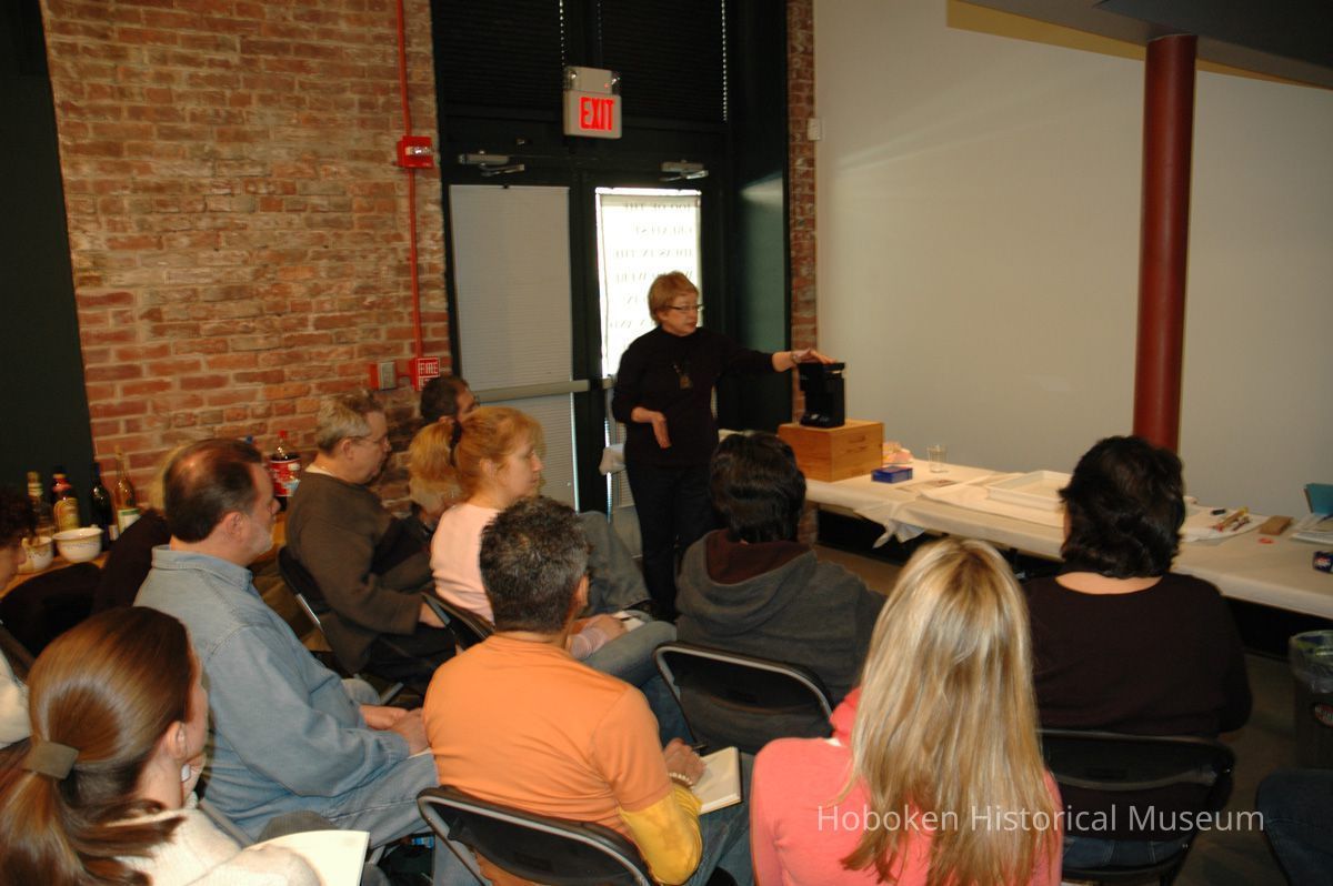 Color photographs, twenty-two, of artist Roslyn Rose giving lecture and demonstration, Hoboken Historical Museum, Upper Gallery & Main Gallery, Hoboken, March 5, 2006.