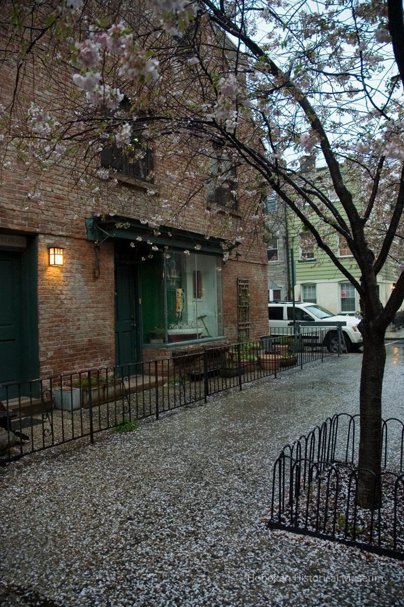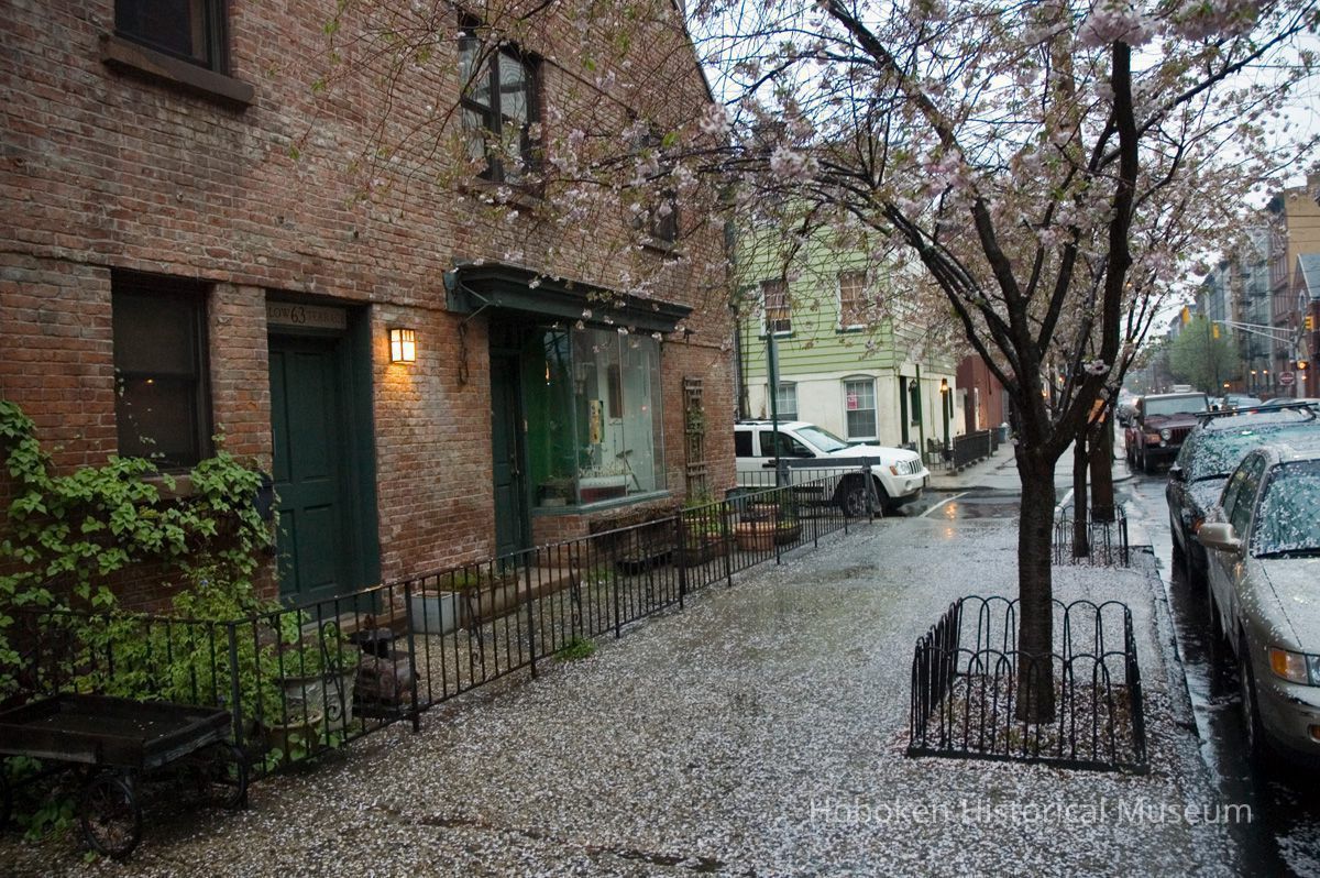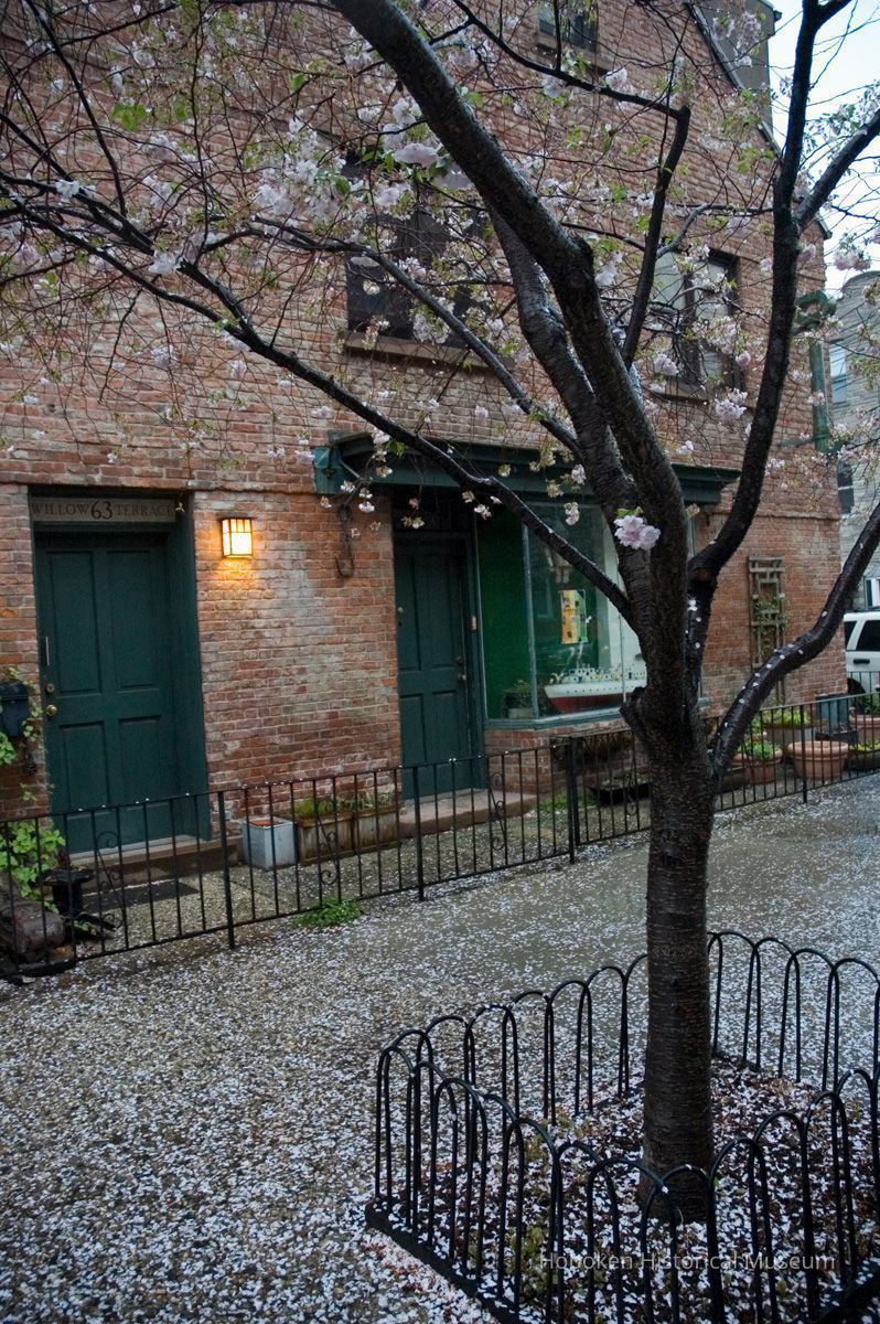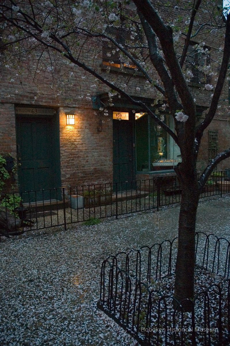 Color photographs, twenty-five, of exterior of 63 Willow Terrace with a cherry tree seen in bloom and dropping petals, Hoboken, April 11-14, 2006.