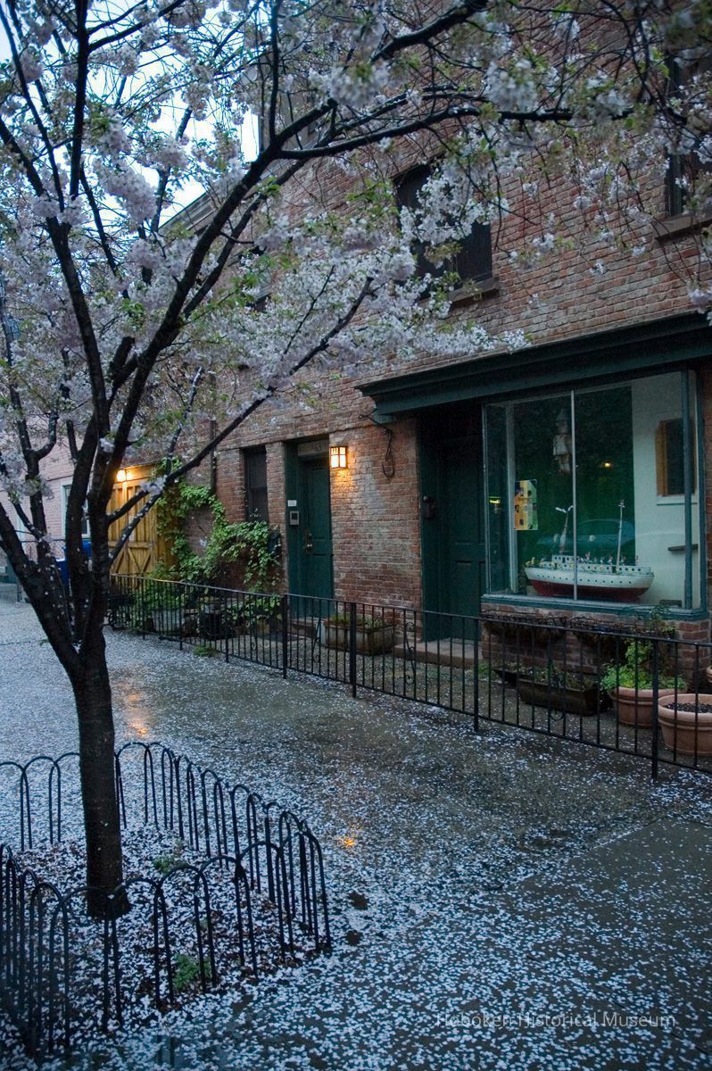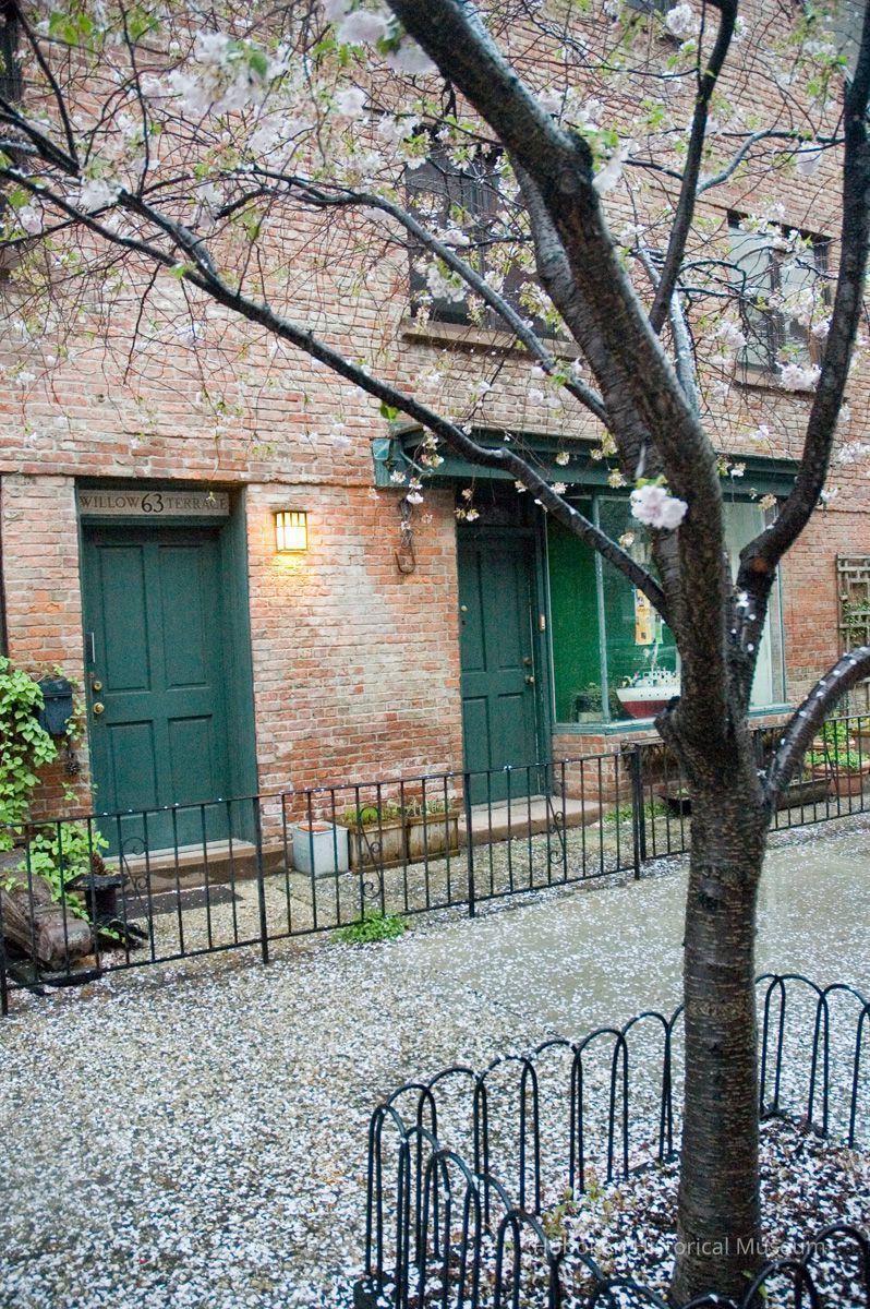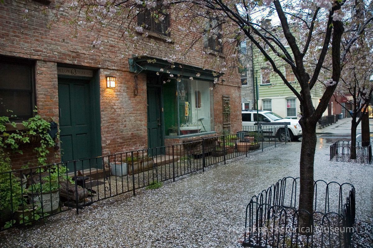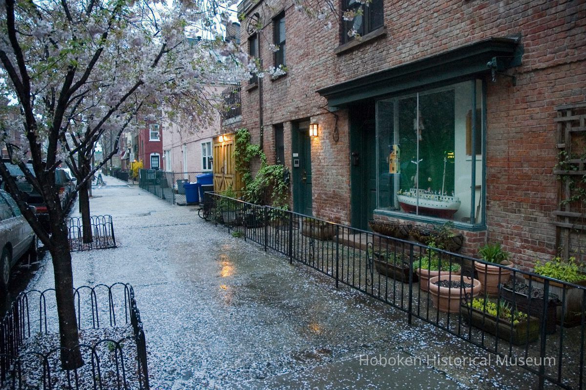 Color photographs, twenty-five, of exterior of 63 Willow Terrace with a cherry tree seen in bloom and dropping petals, Hoboken, April 11-14, 2006.