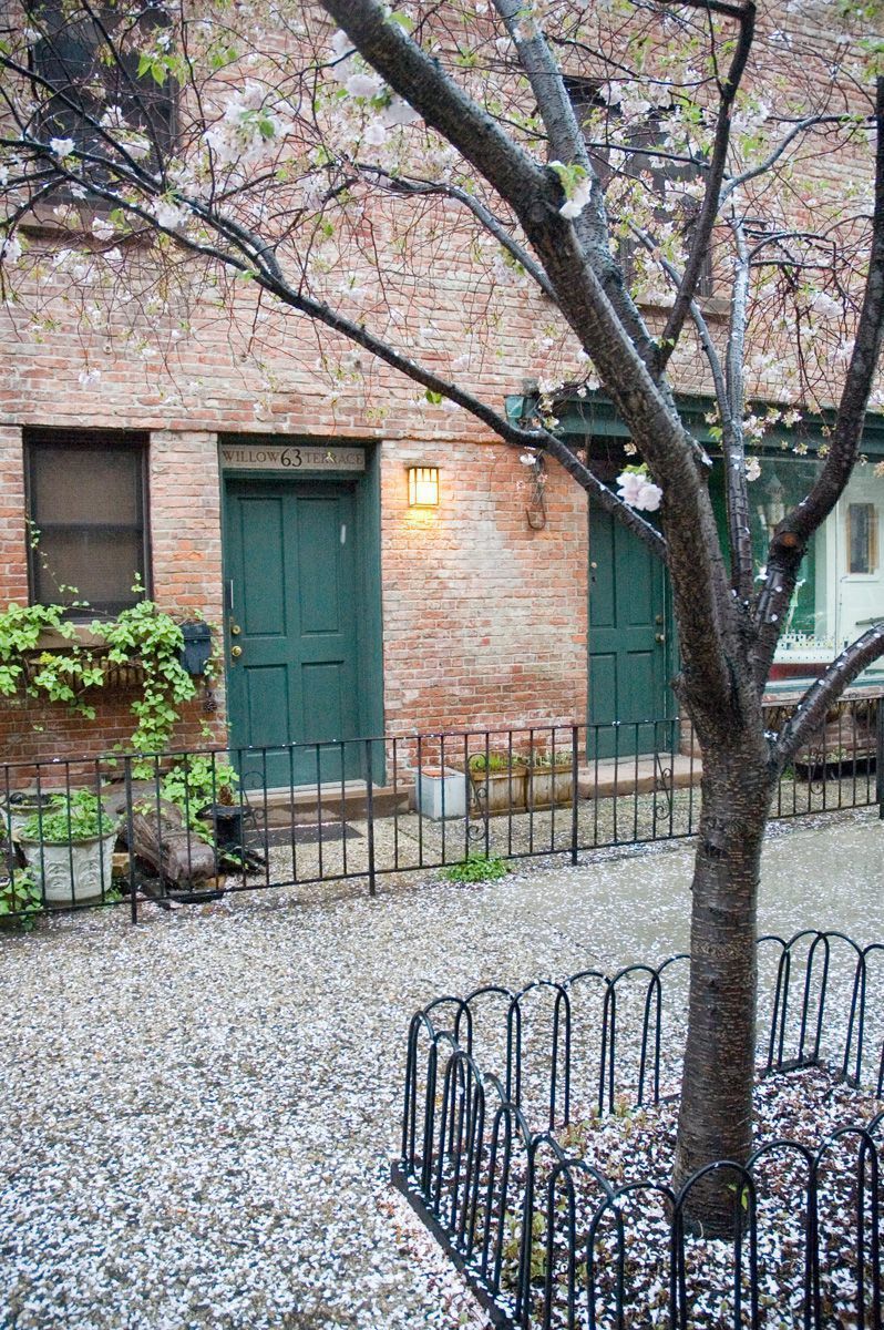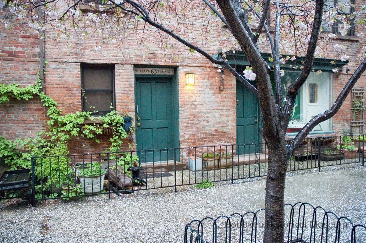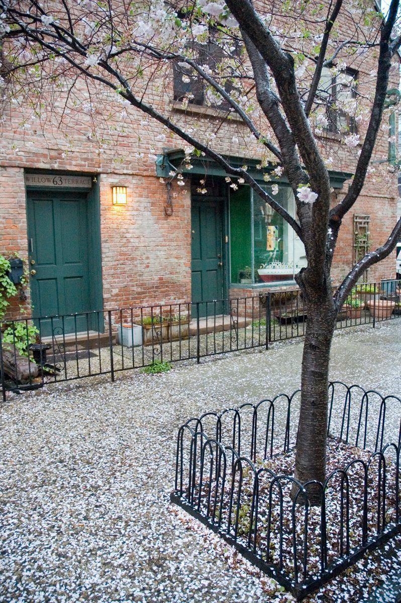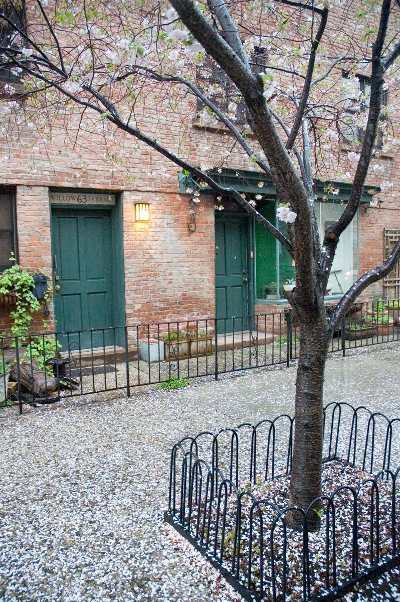 Color photos, 25, of exterior of 63 Willow Terrace with a cherry tree seen in bloom and dropping petals, Hoboken, April 11-14, 2006.
